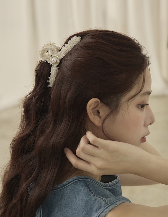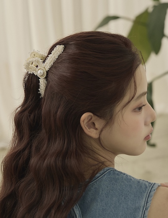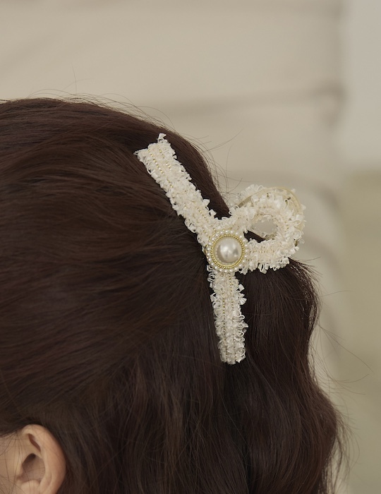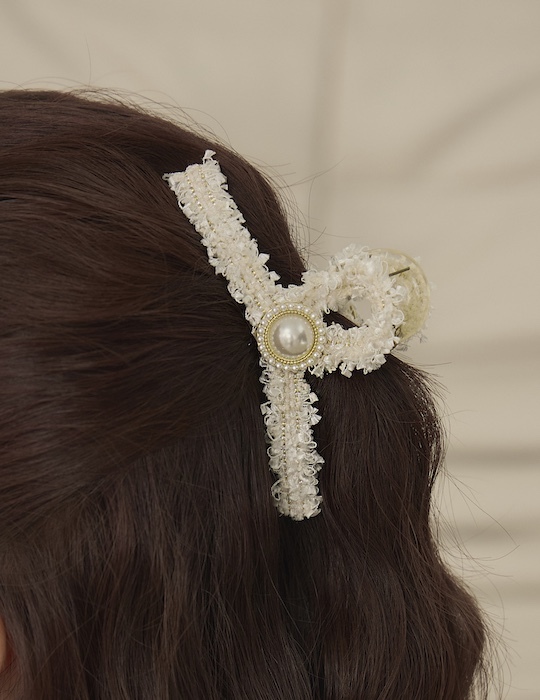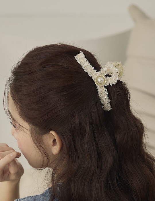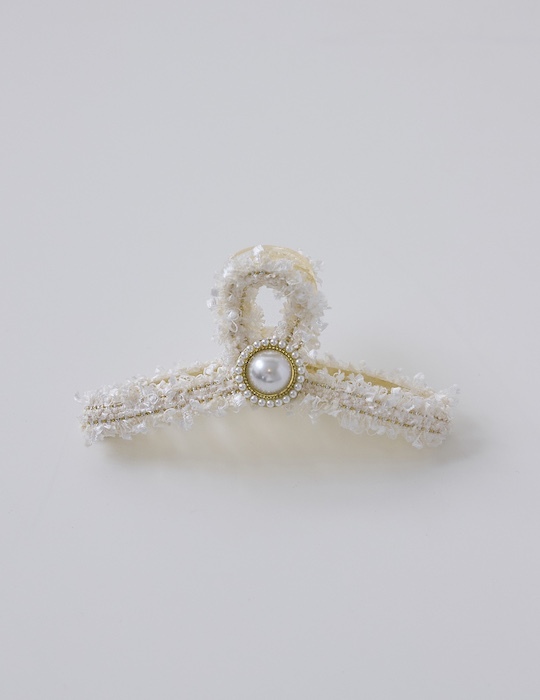 優雅毛呢珍珠髮夾(白)