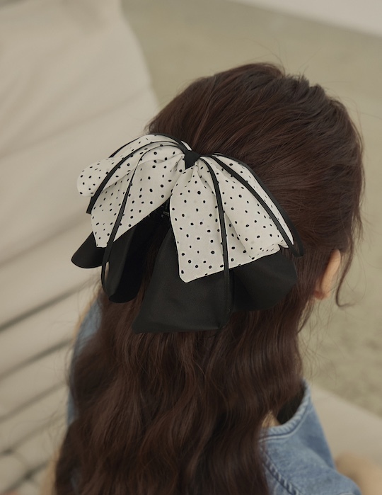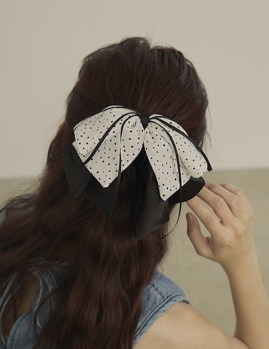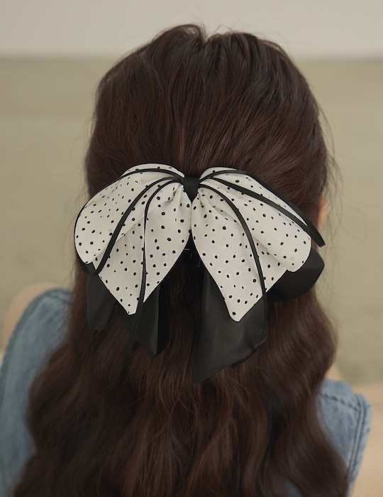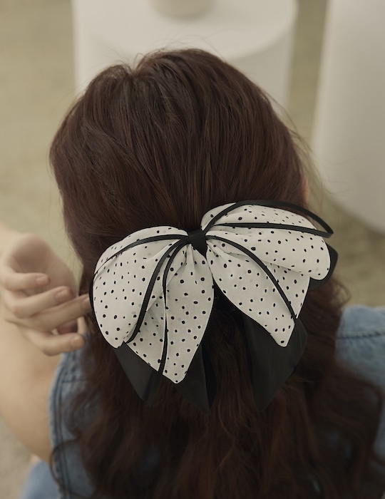 商品名稱:復古圓點大蝴蝶結髮夾(白)