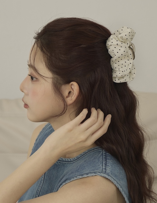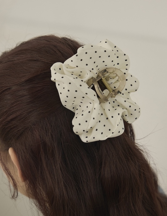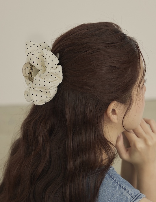 復古風圓點髮夾(白)
