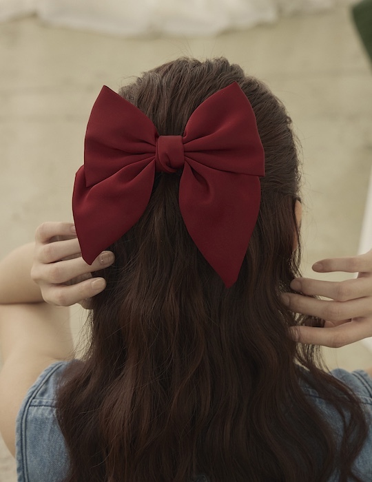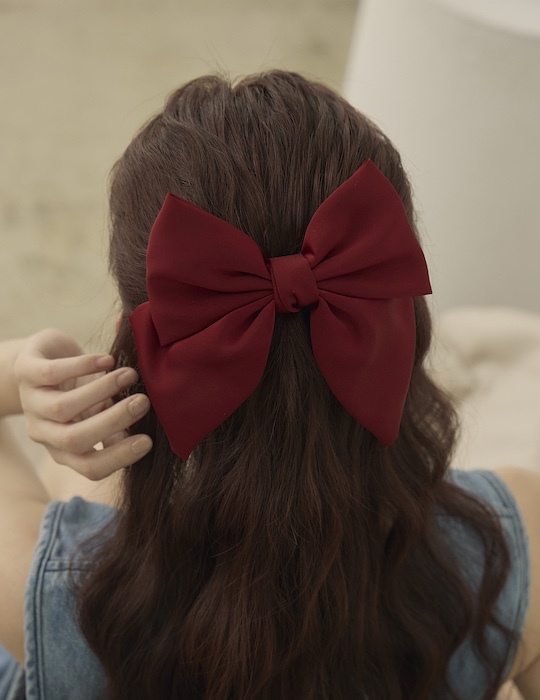 商品名稱:緞面大蝴蝶結髮夾(紅)