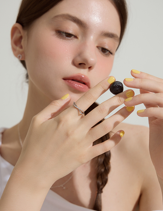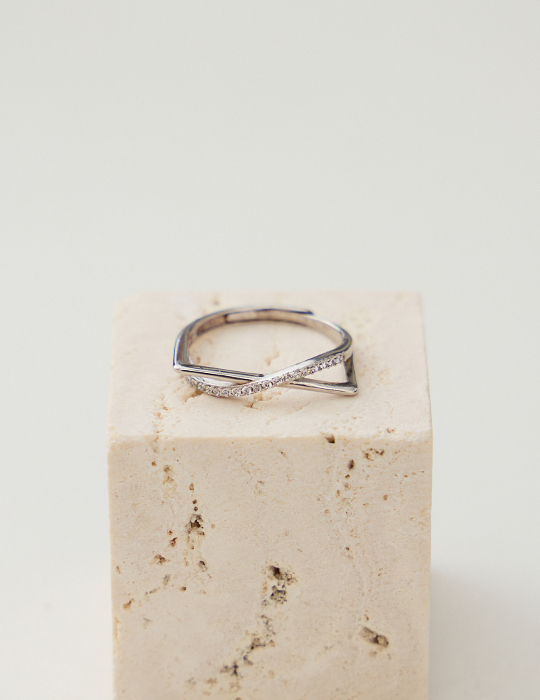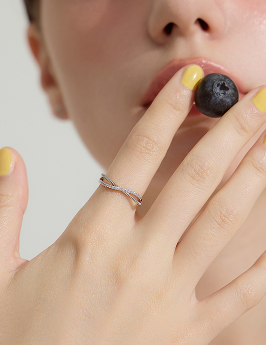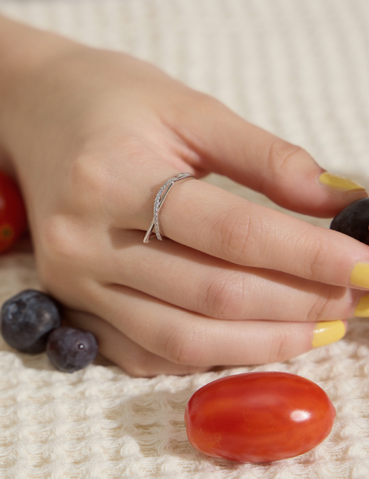 商品名稱: 【925純銀】個性線條排鑽可調式戒指
