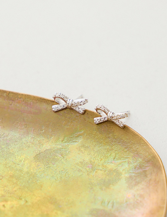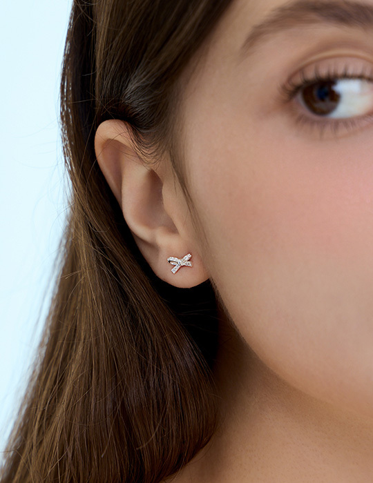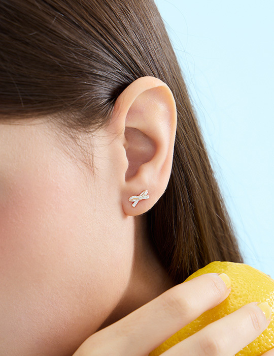 【925純銀】優雅綁帶蝴蝶結。針式耳環