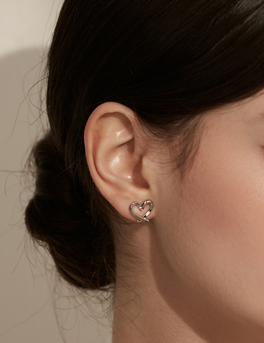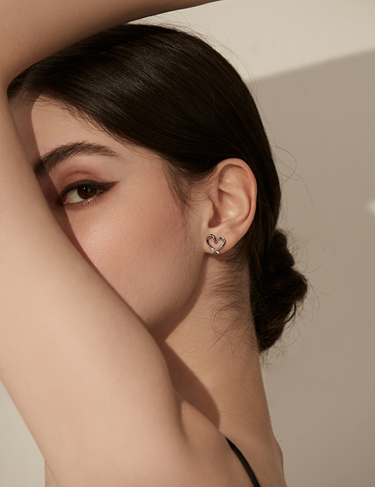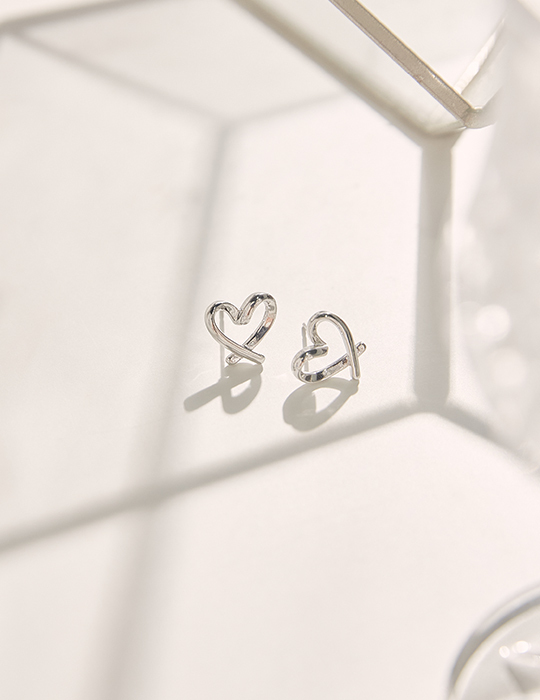 [2色]不規則線條愛心。銀針耳環