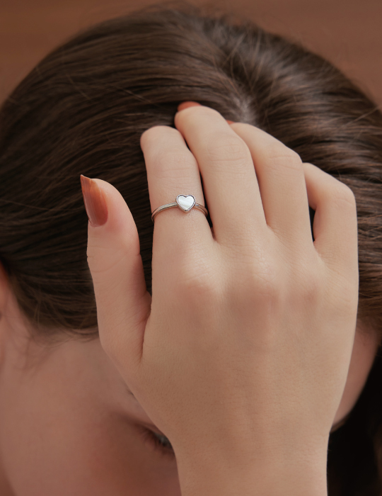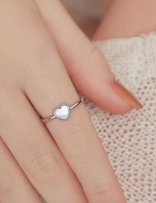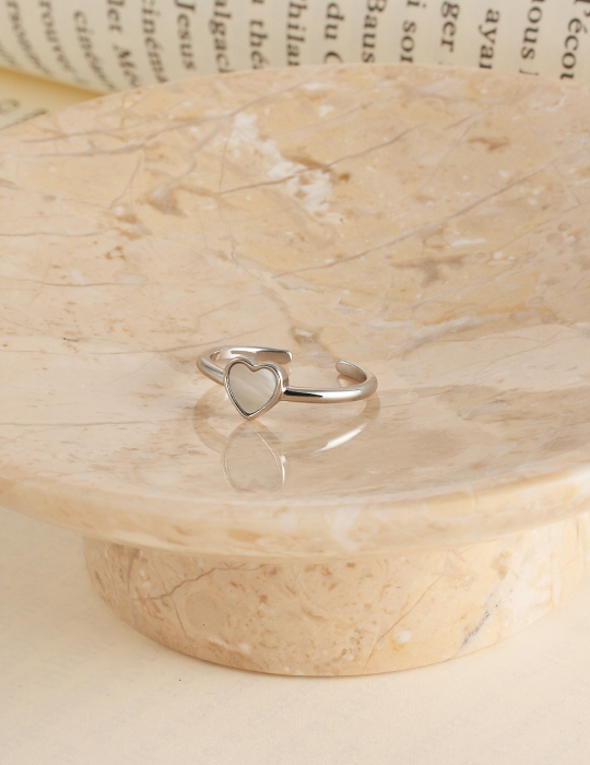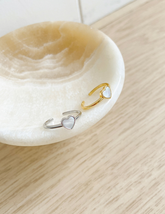 [2色]光澤愛心貝殼可調式戒指