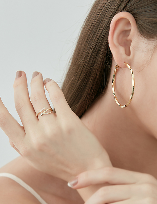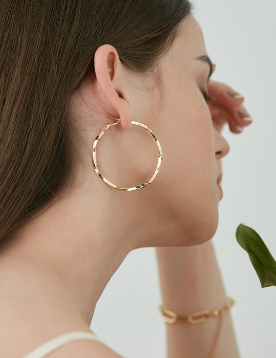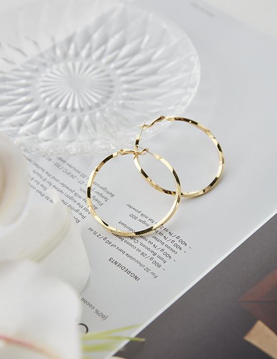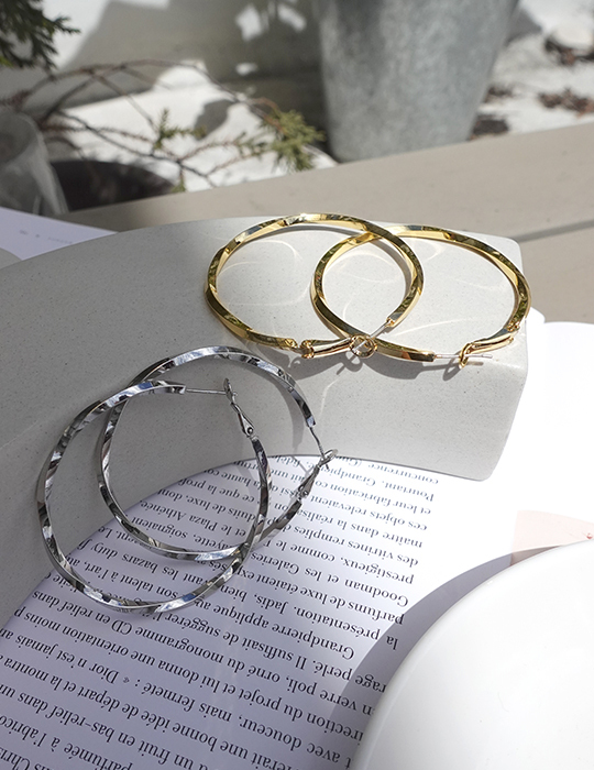 [2色]經典扭轉大圓。銀針耳環