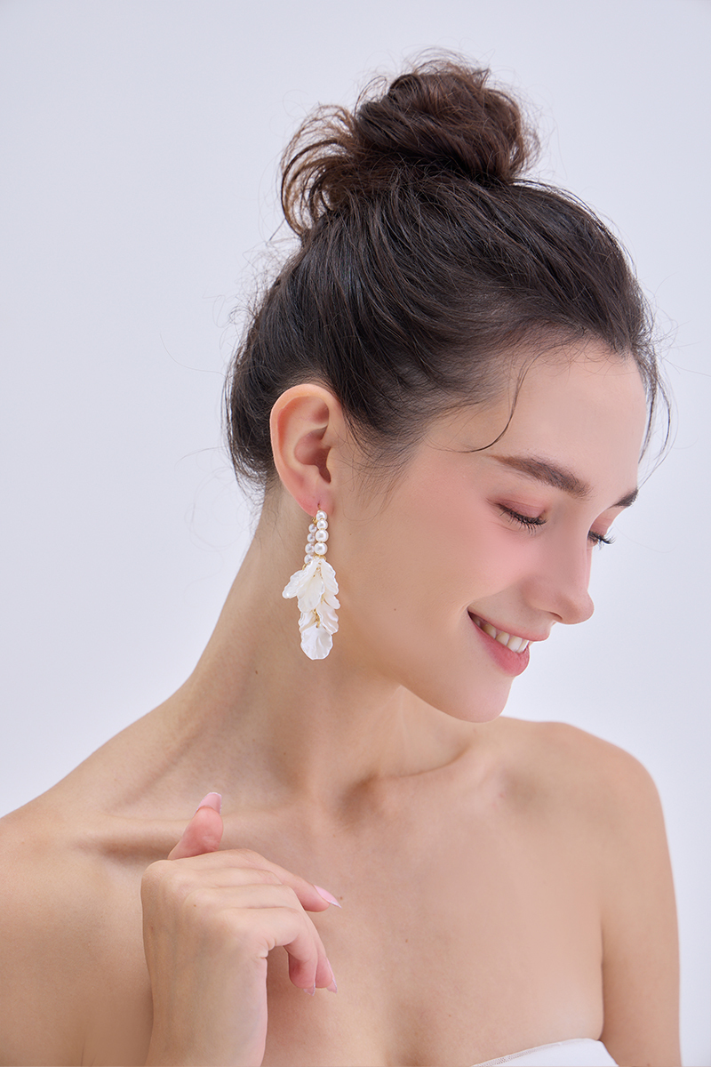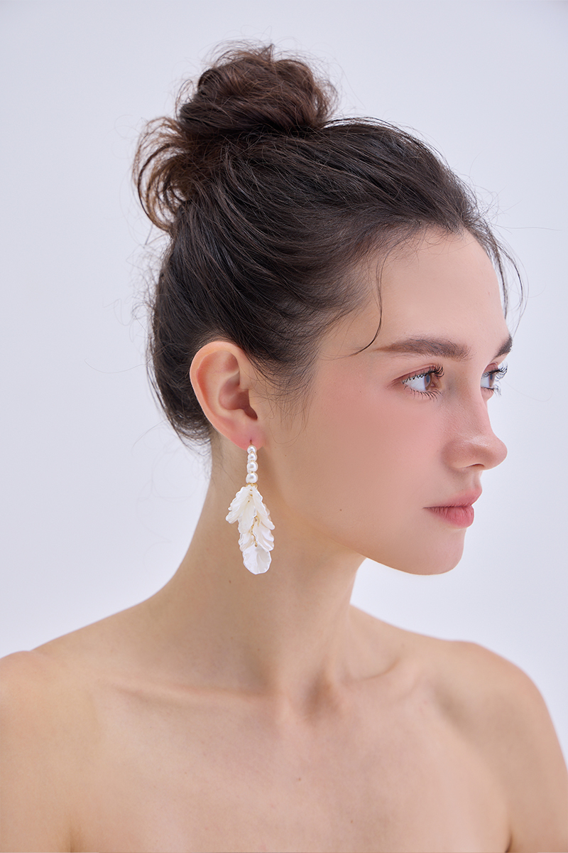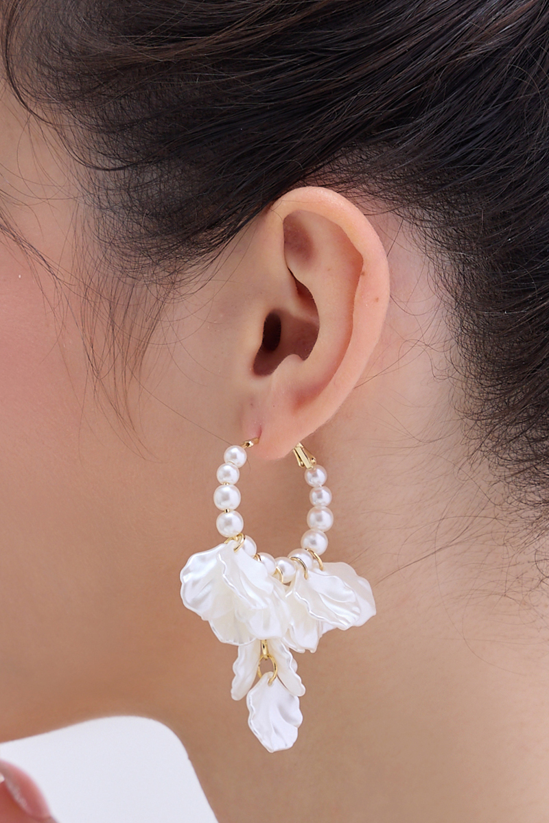 商品名稱:C形環圈珍珠花瓣。銀針耳環