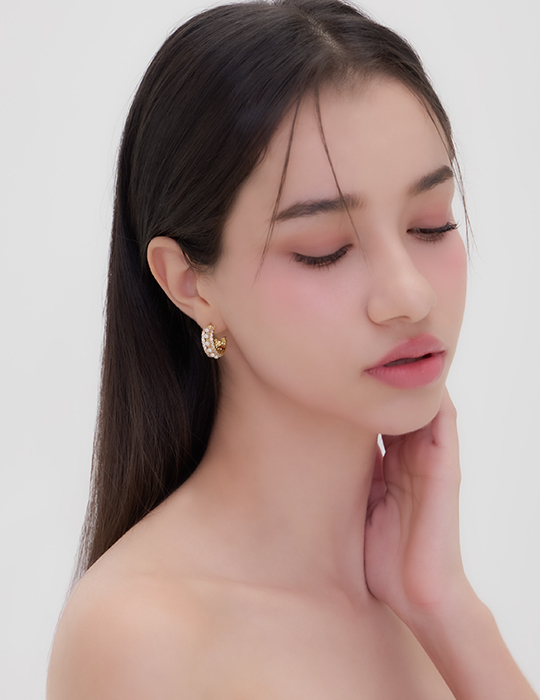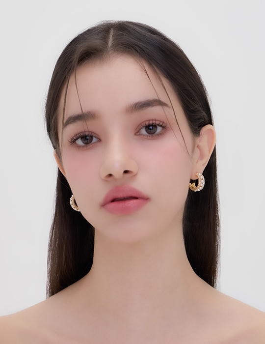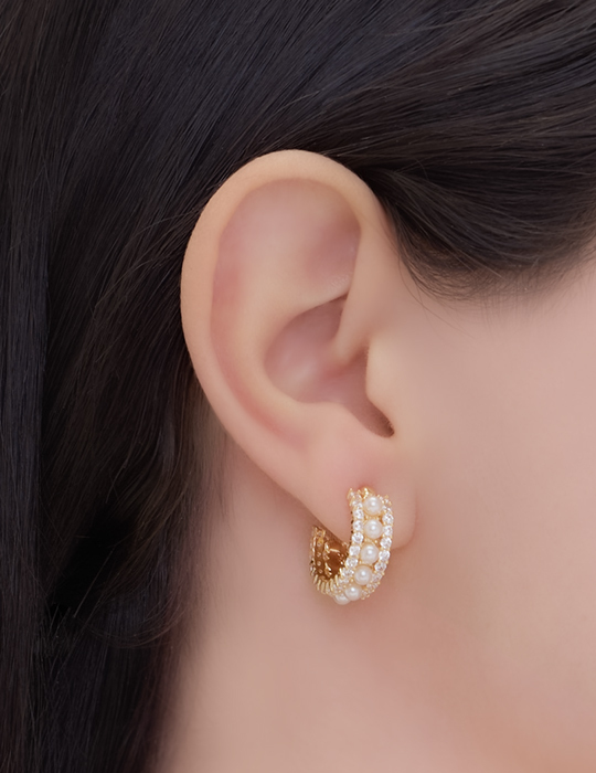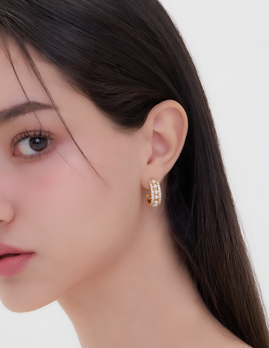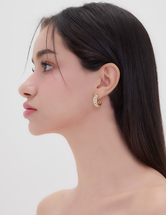 商品名稱:C形雙排鑽針珍珠。夾式耳環