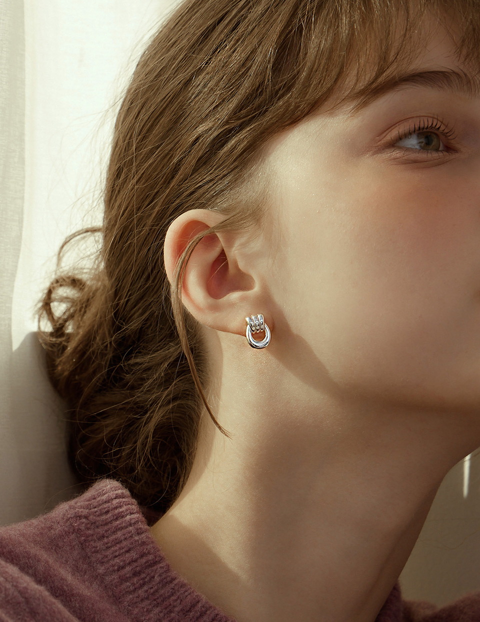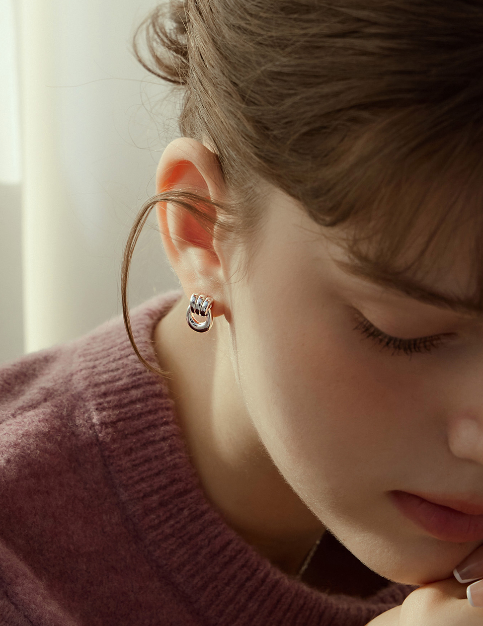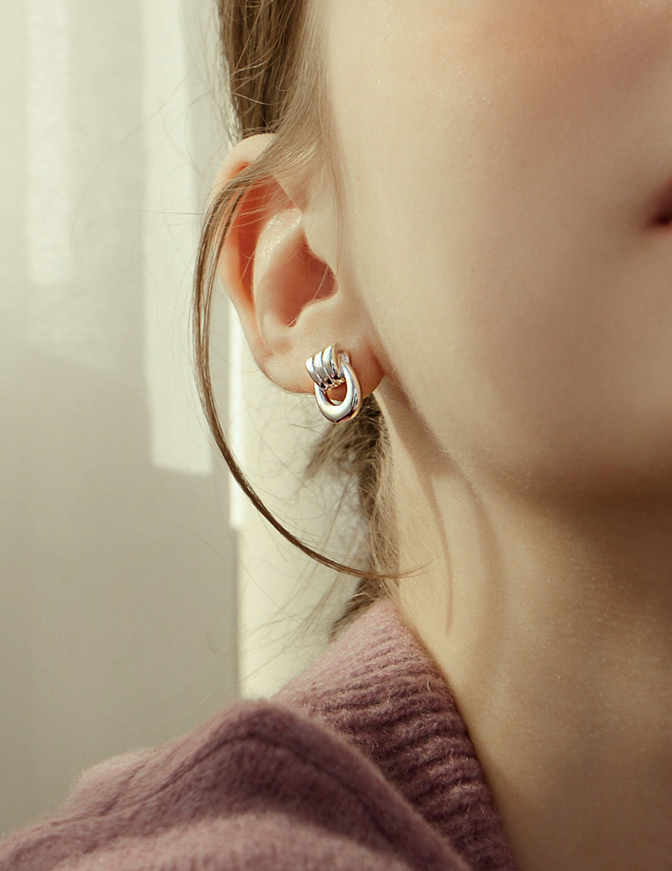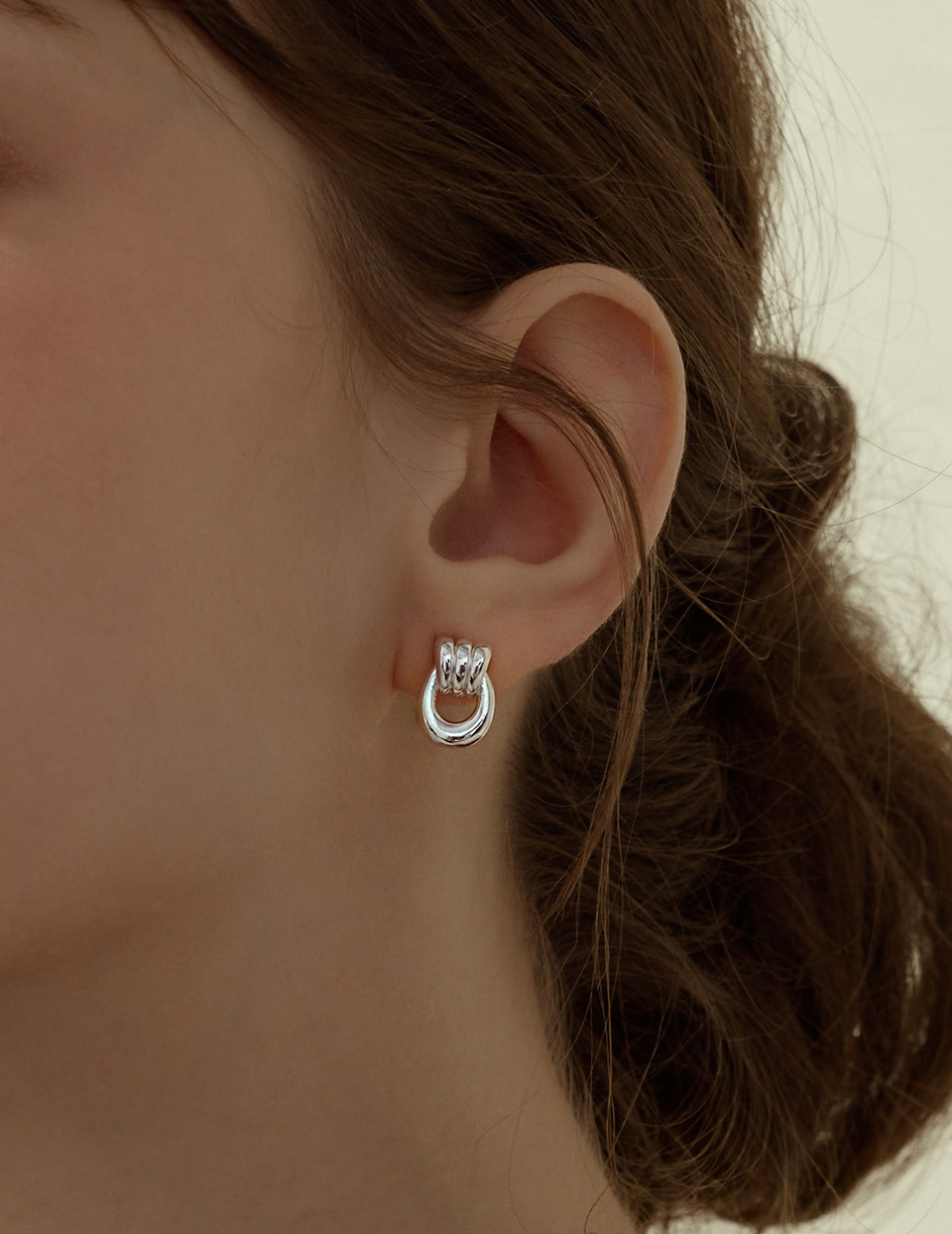 U型圈圈相扣。針式耳環