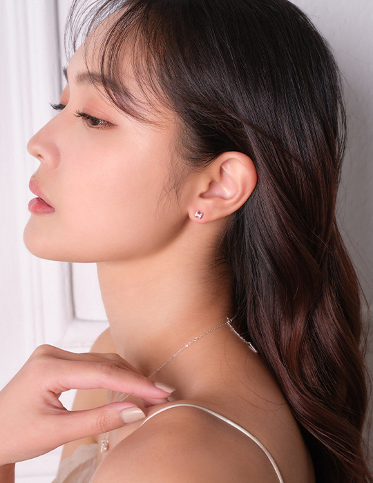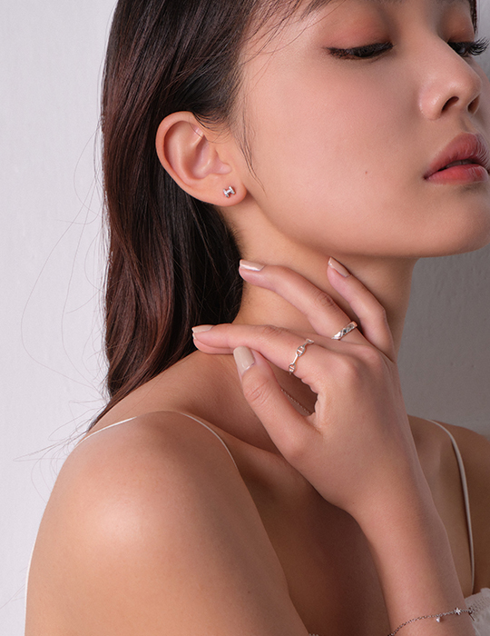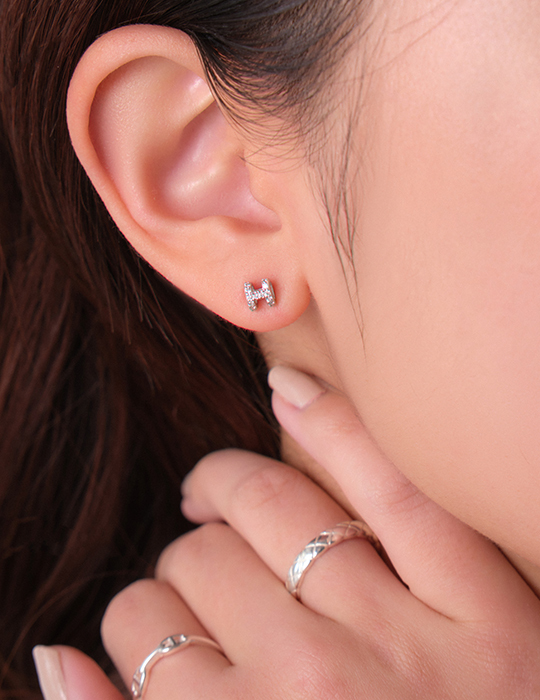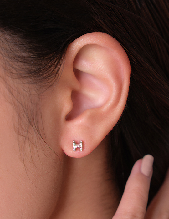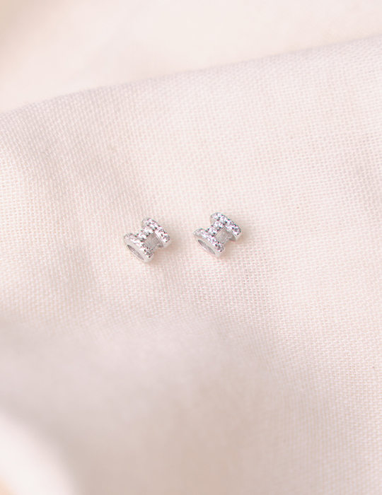 【925純銀】4.5MM滿鑽立體。銀針耳環(銀)