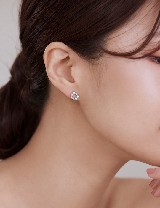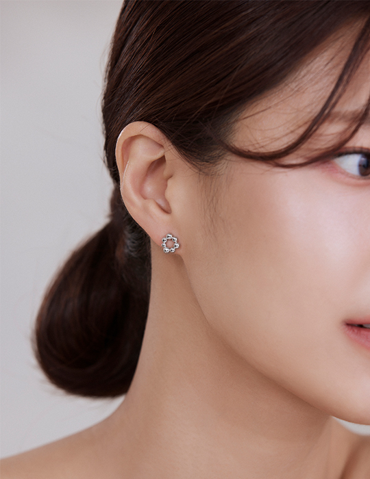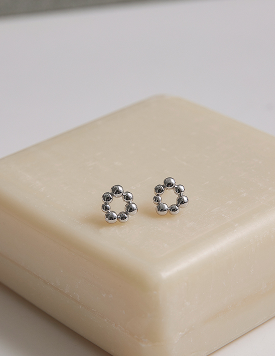 【925純銀】不規則小圓球。銀針耳環(銀)