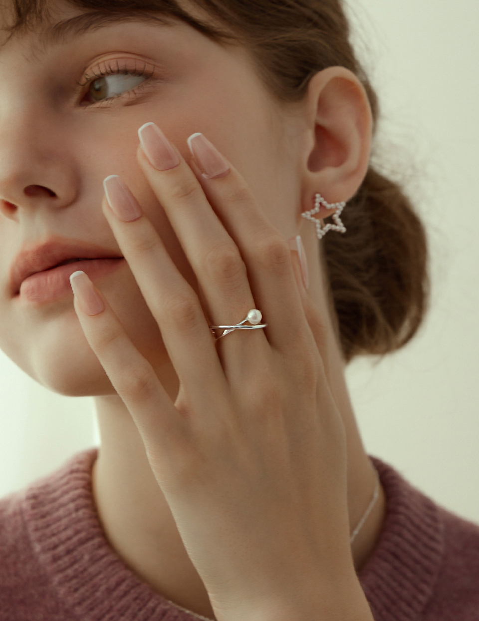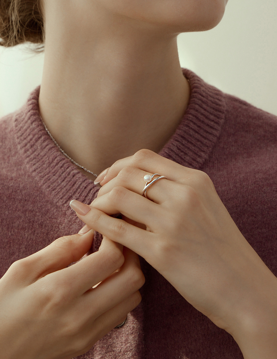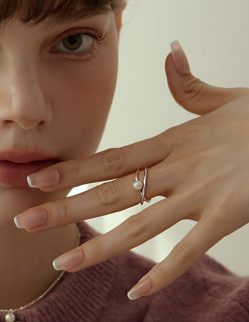 商品名稱:【925純銀】交錯珍珠可調式戒指(銀)