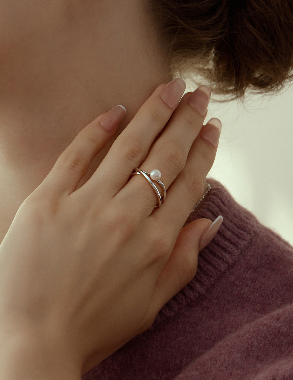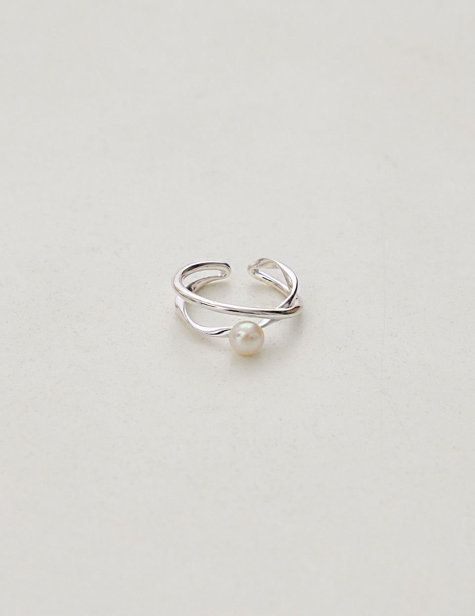 【925純銀】交錯珍珠可調式戒指(銀)