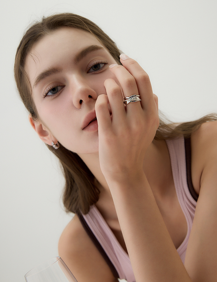商品名稱:【925純銀】個性多層交錯可調式戒指