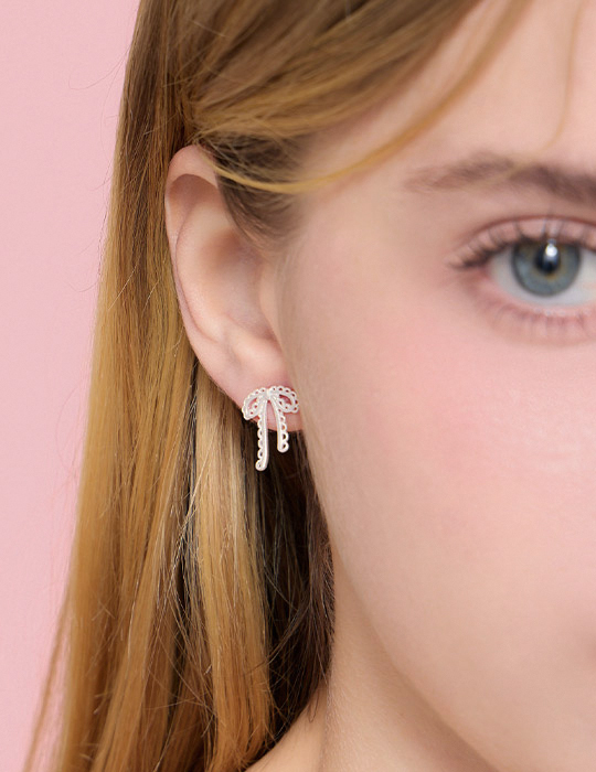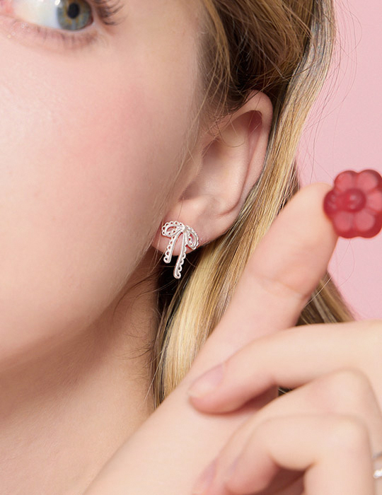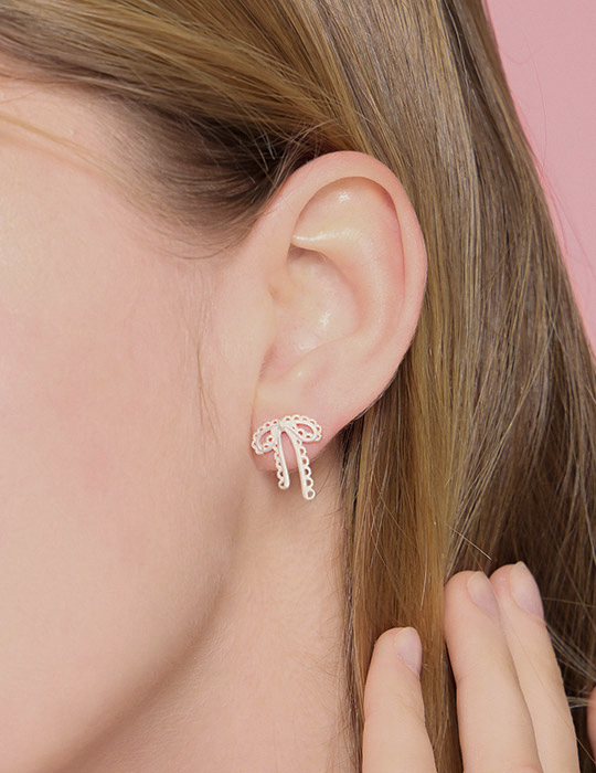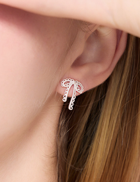 【925純銀】可愛蕾絲蝴蝶結。銀針耳環