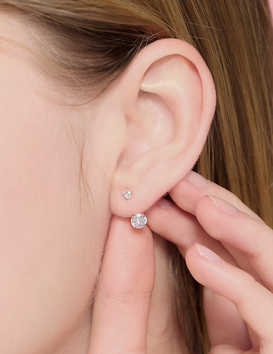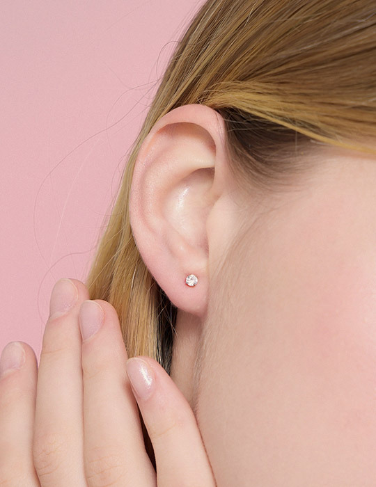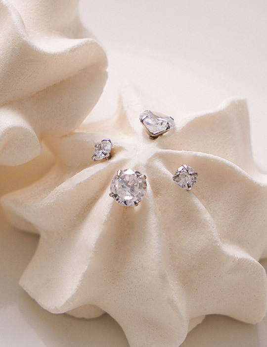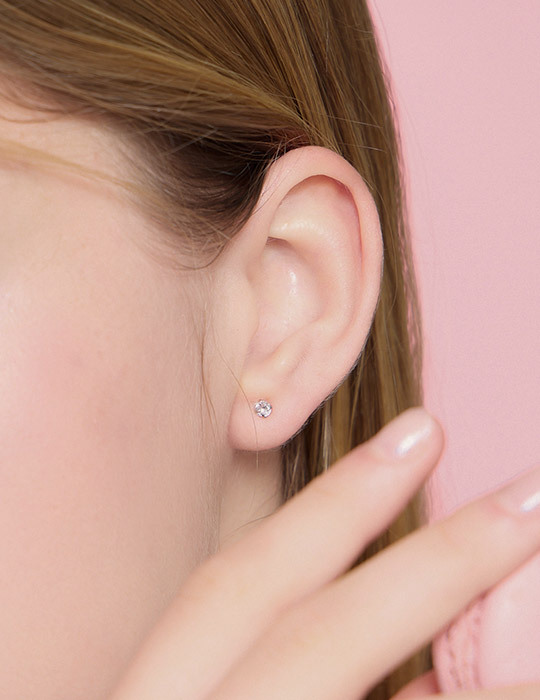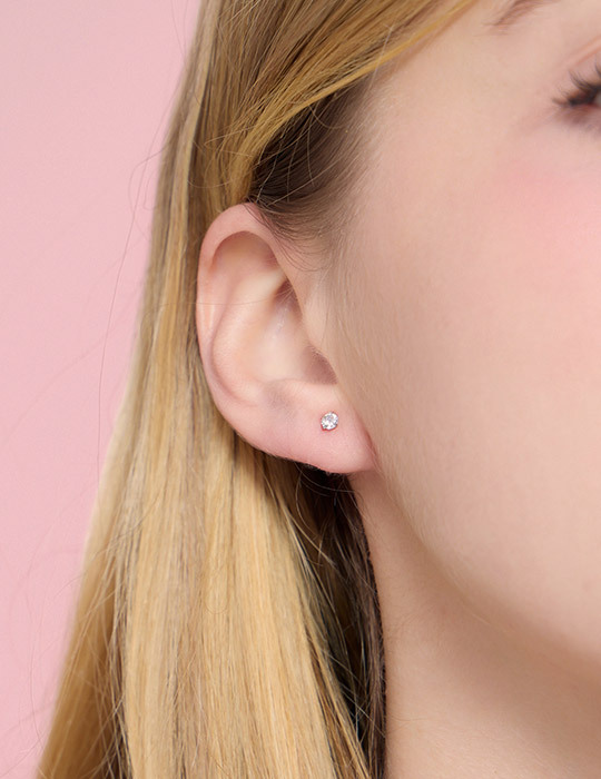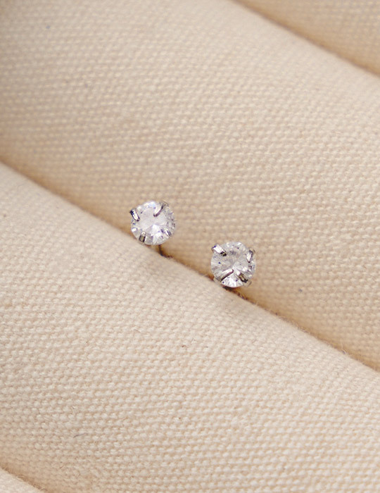 【925純銀】圓形小單鑽。銀針耳環