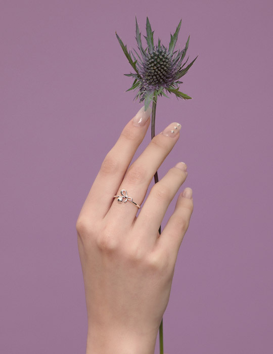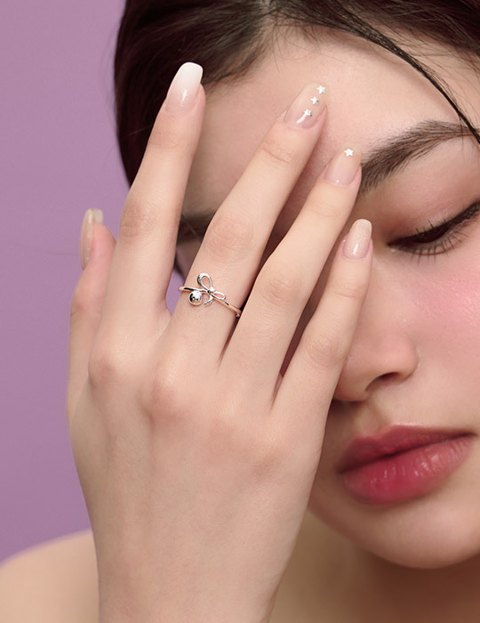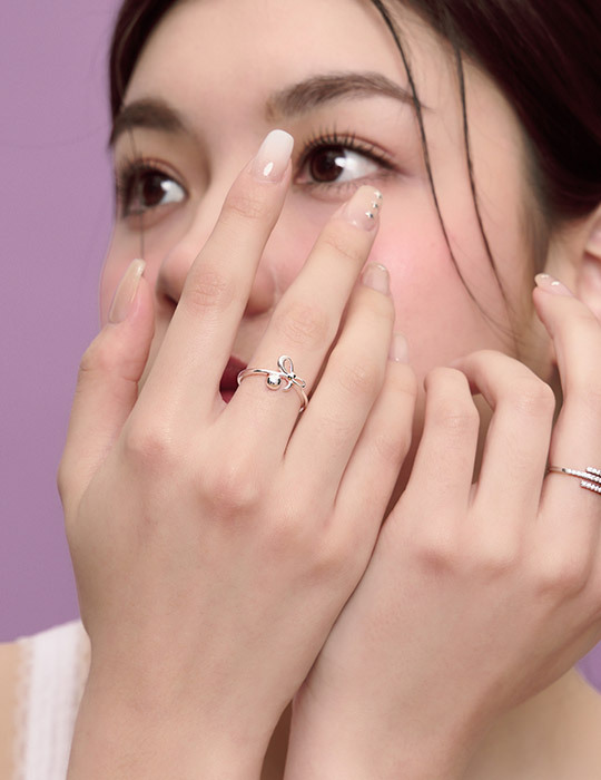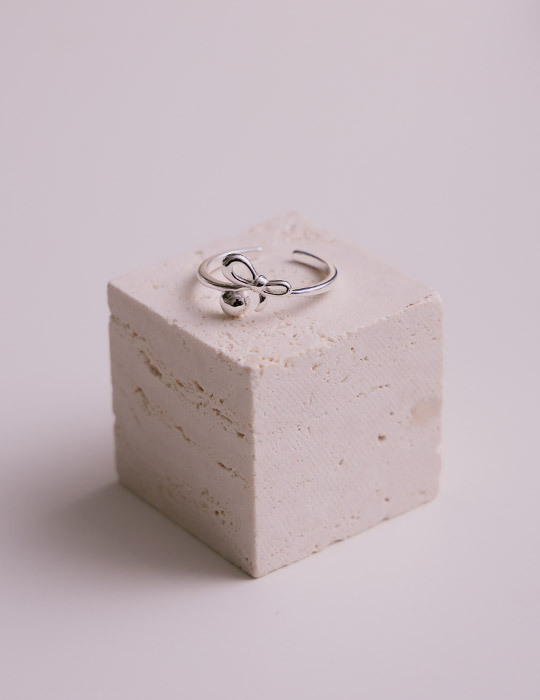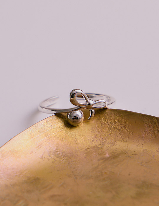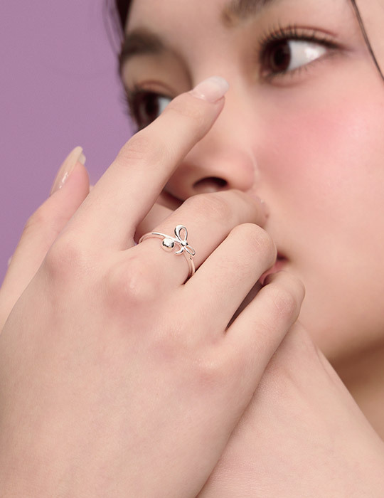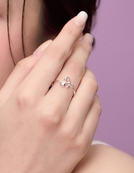 【925純銀】圓珠點綴蝴蝶結可調式戒指