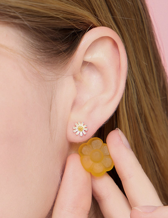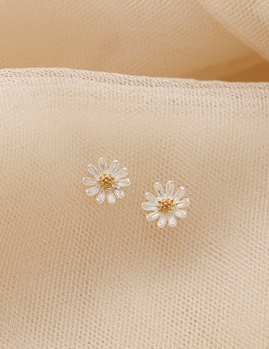 【925純銀】夏日迷你小雛菊。銀針耳環