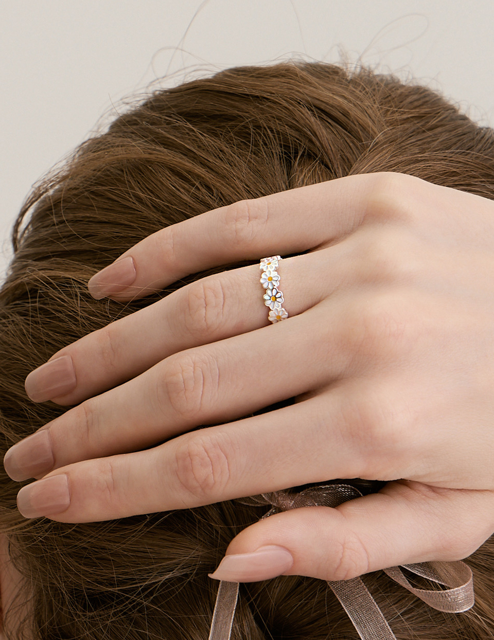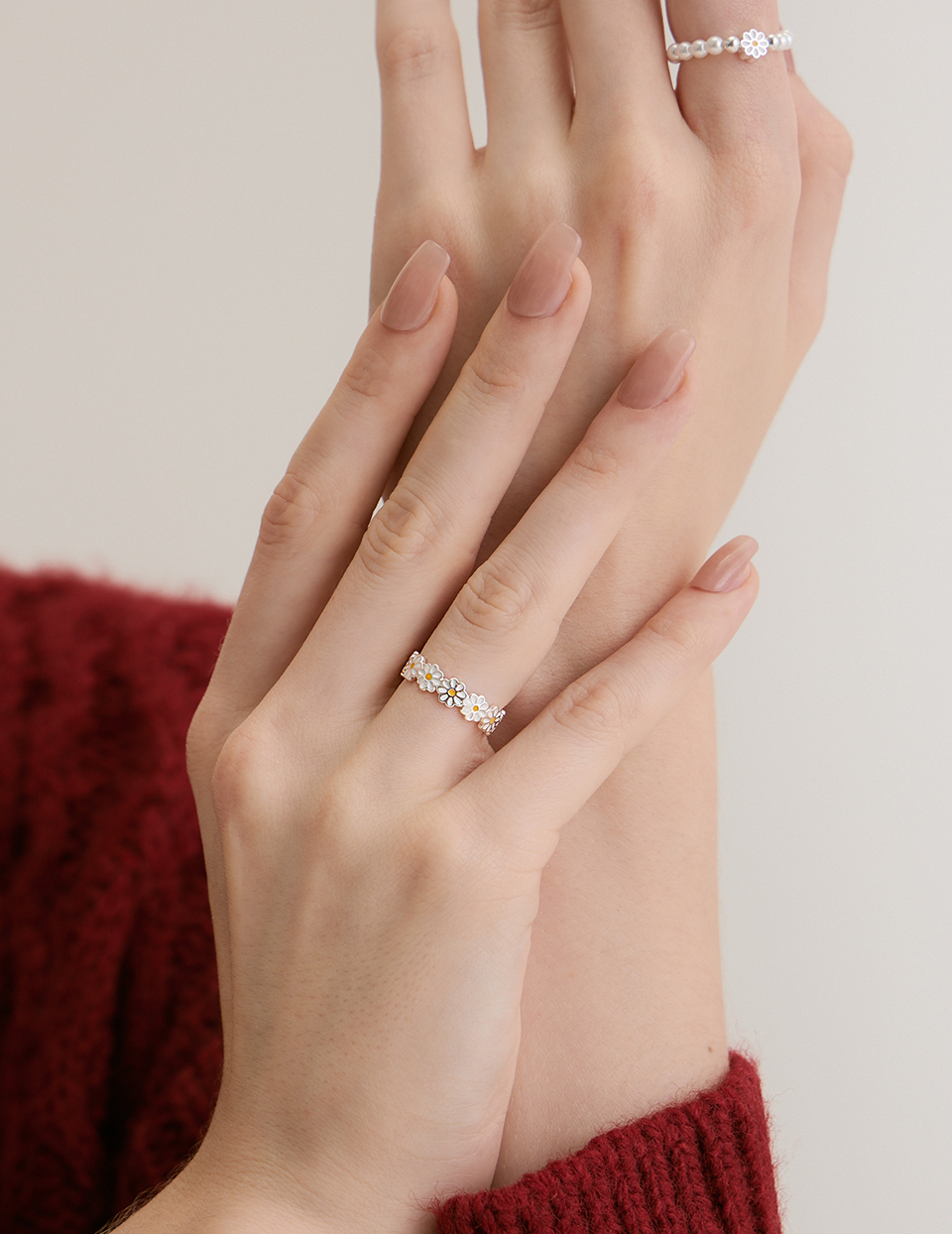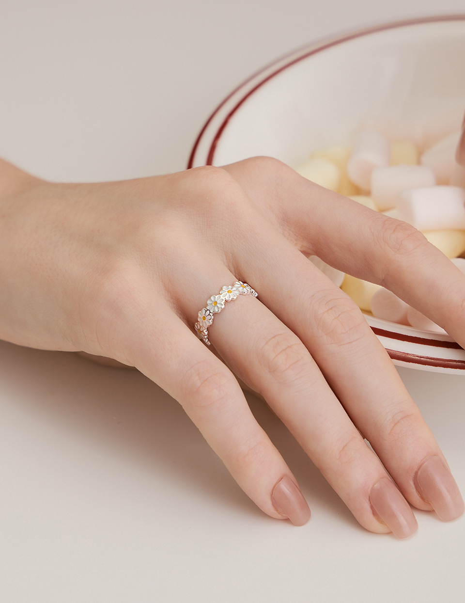商品名稱:【925純銀】小雛菊花圈可調式戒指