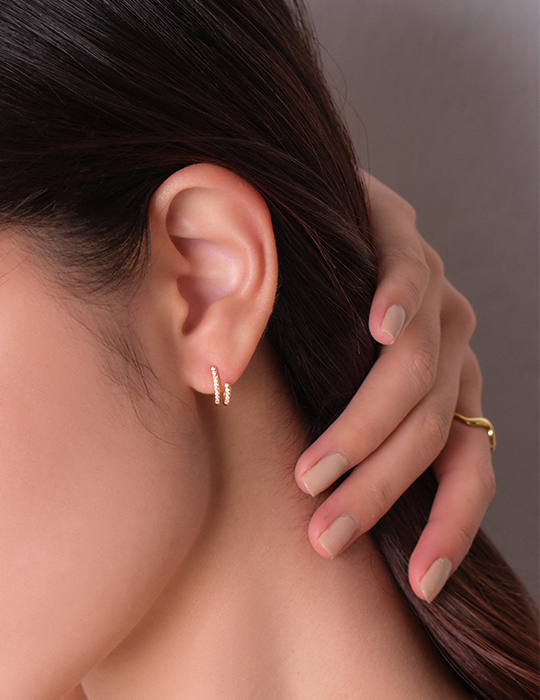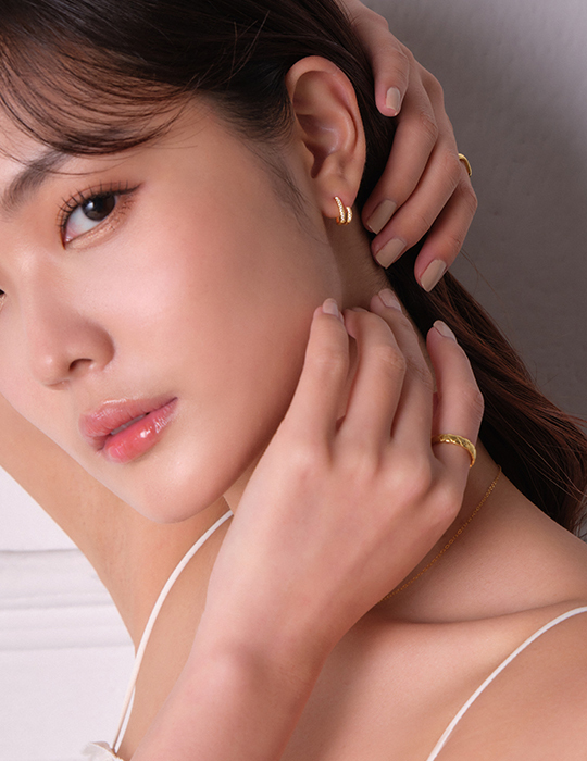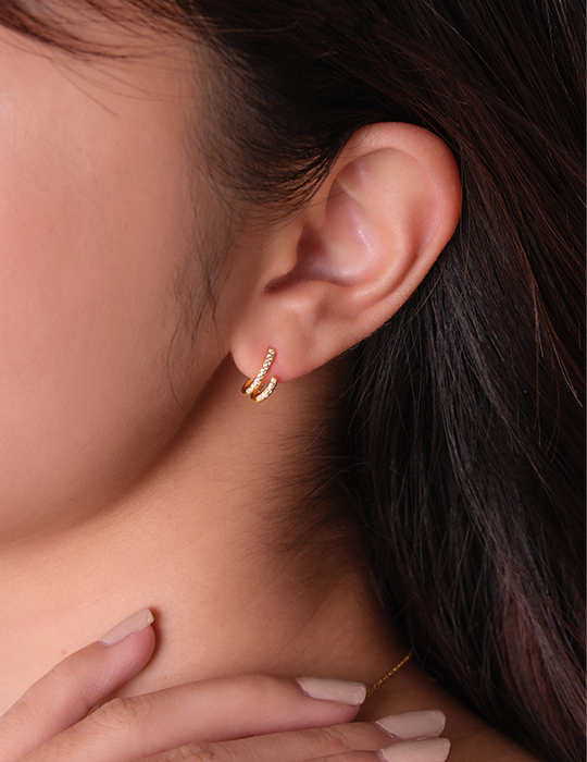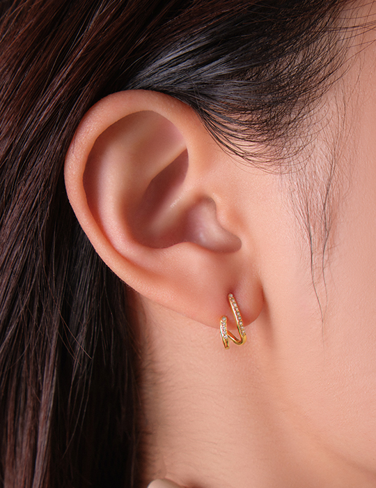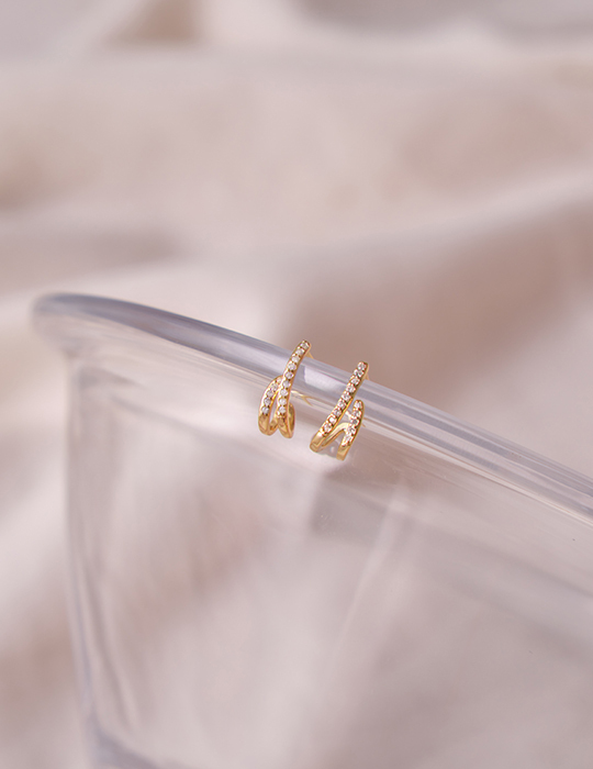 【925純銀】層次線條鑲鋯石。銀針耳環