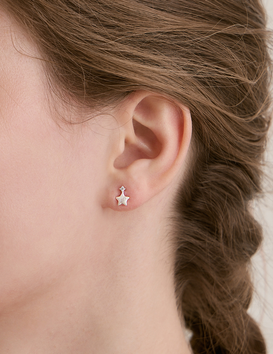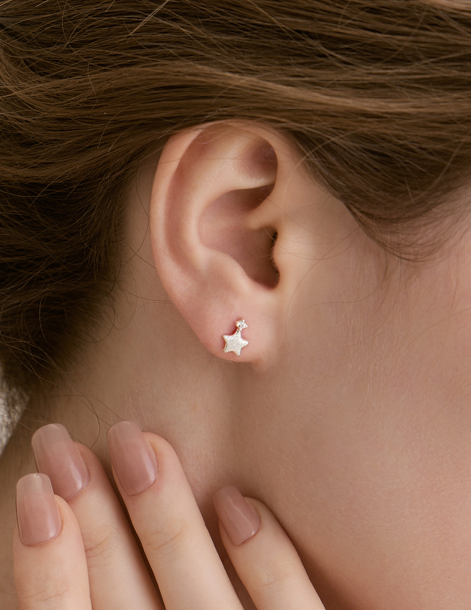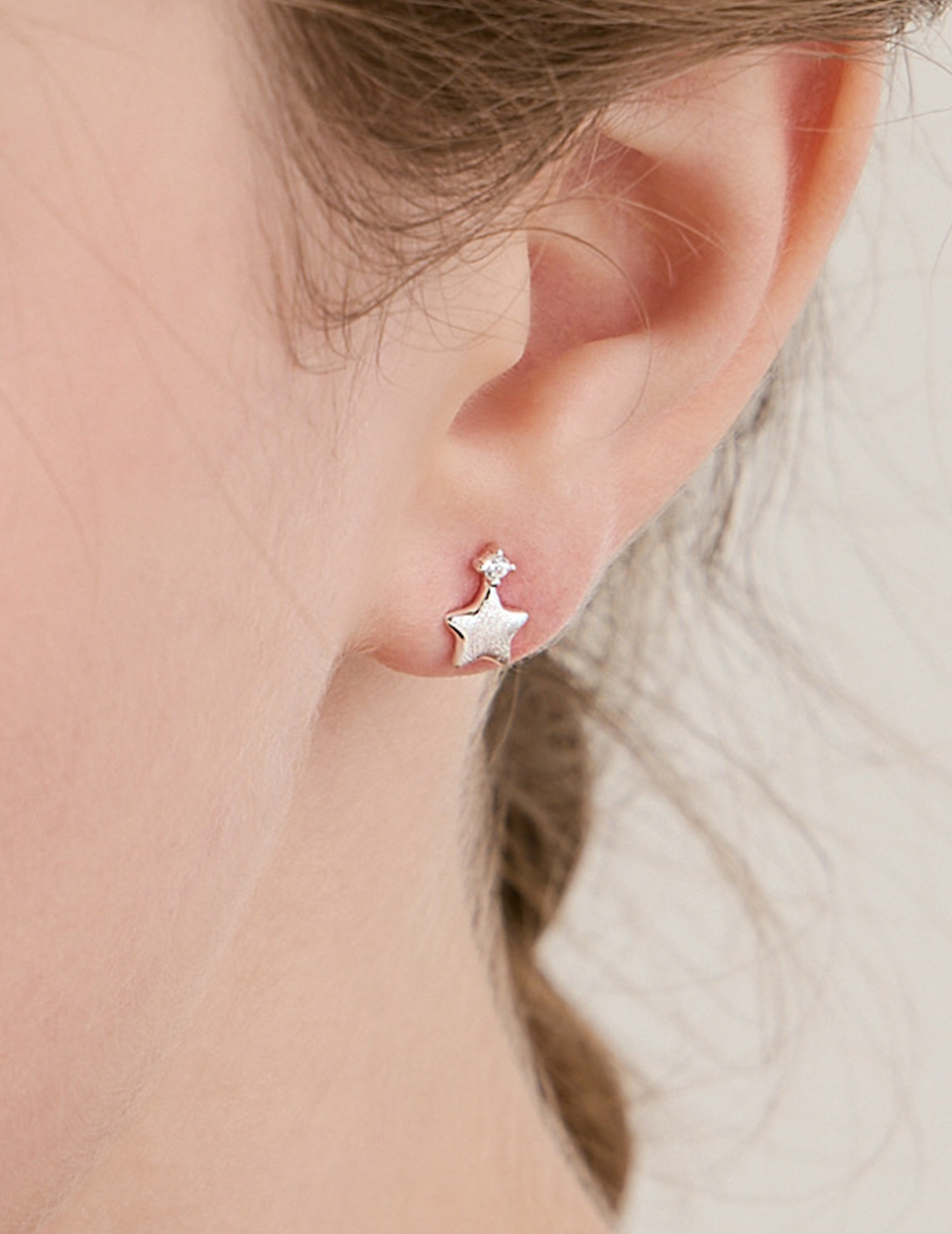 商品名稱:【925純銀】拔絲點鑽星星。針式耳環