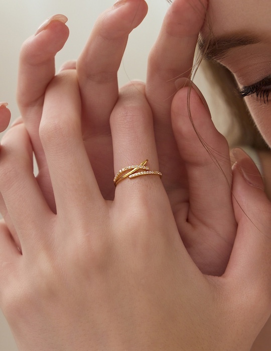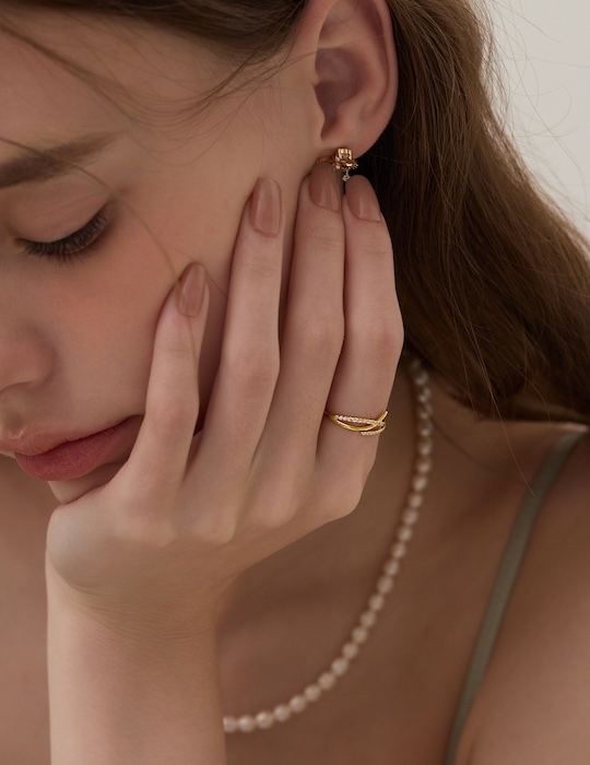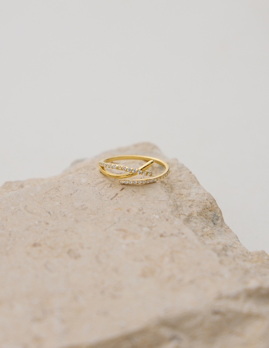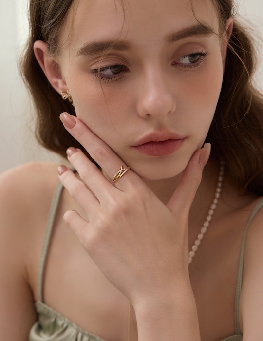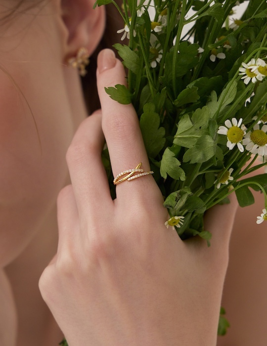 商品名稱:【925純銀】排鑽交織可調式戒指(金)