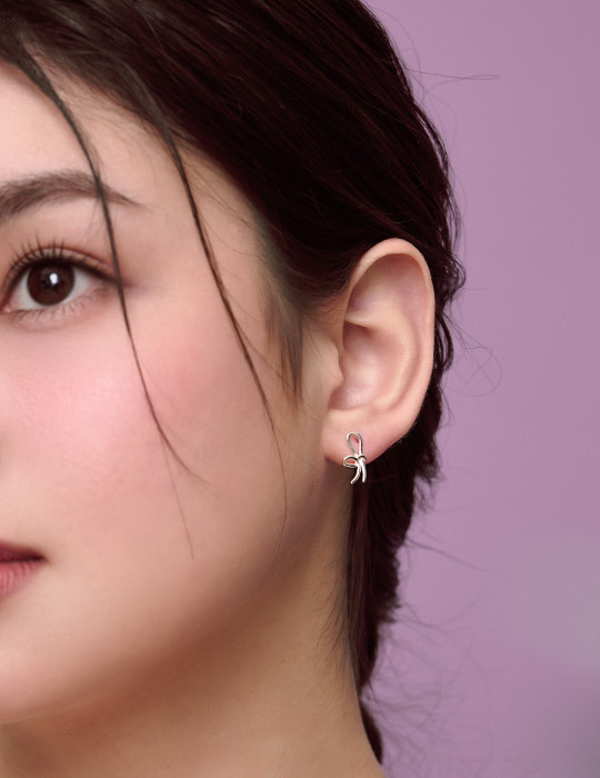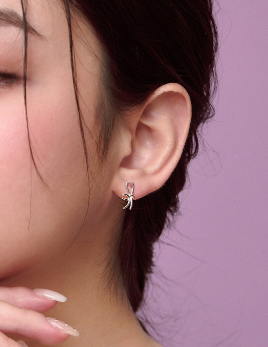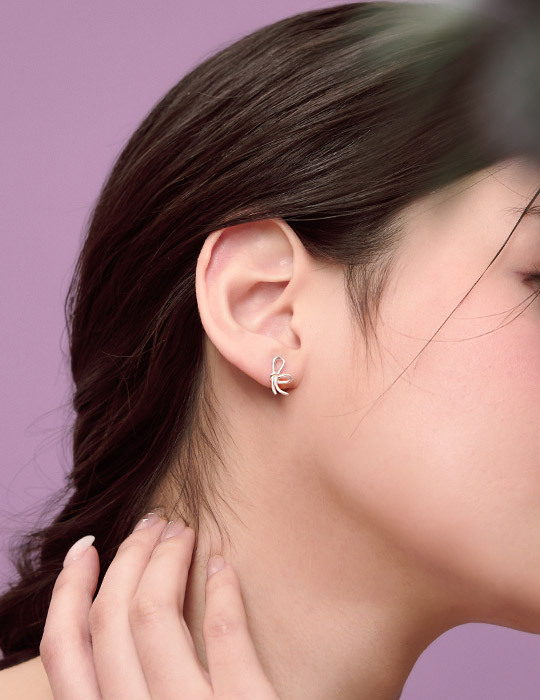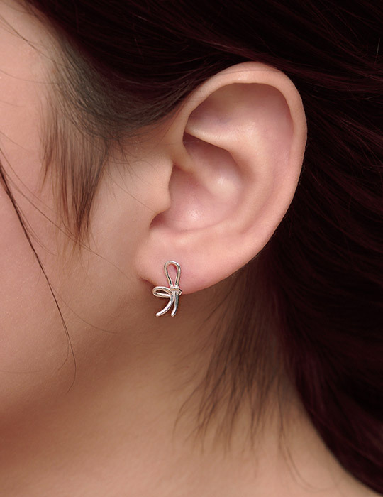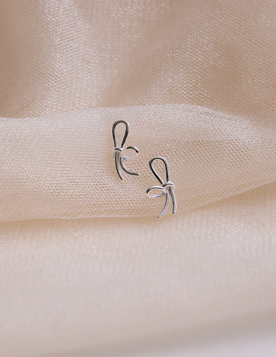 【925純銀】時髦線條蝴蝶結。銀針耳環