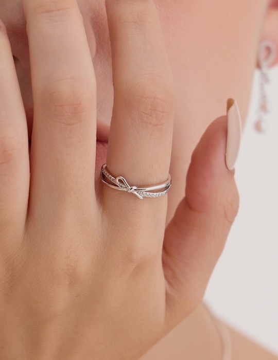 商品名稱: 【925純銀】柔光蝴蝶結可調式戒指