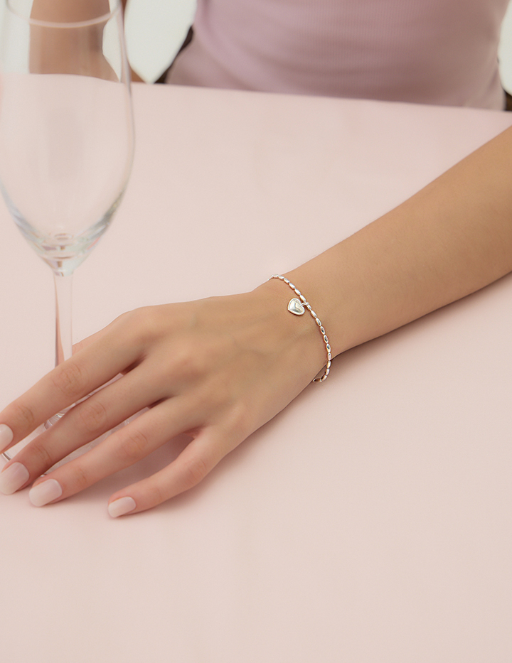 商品名稱:【925純銀】橄欖串珠愛心手鍊