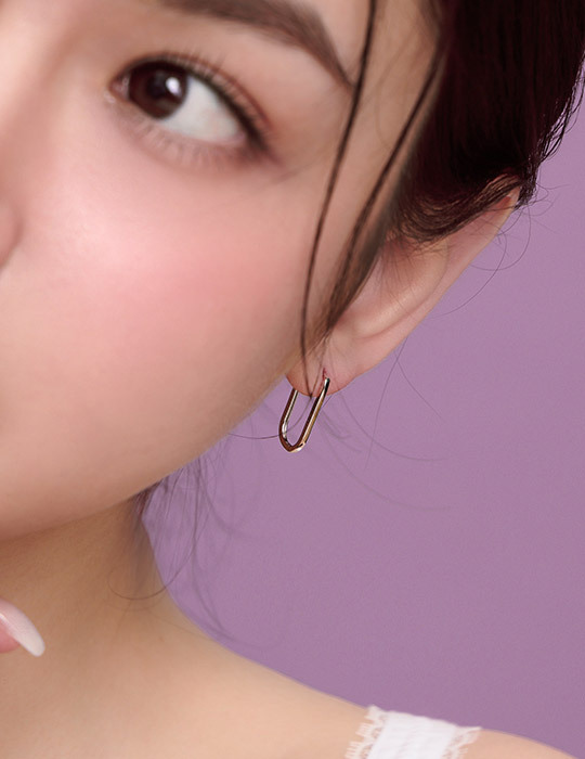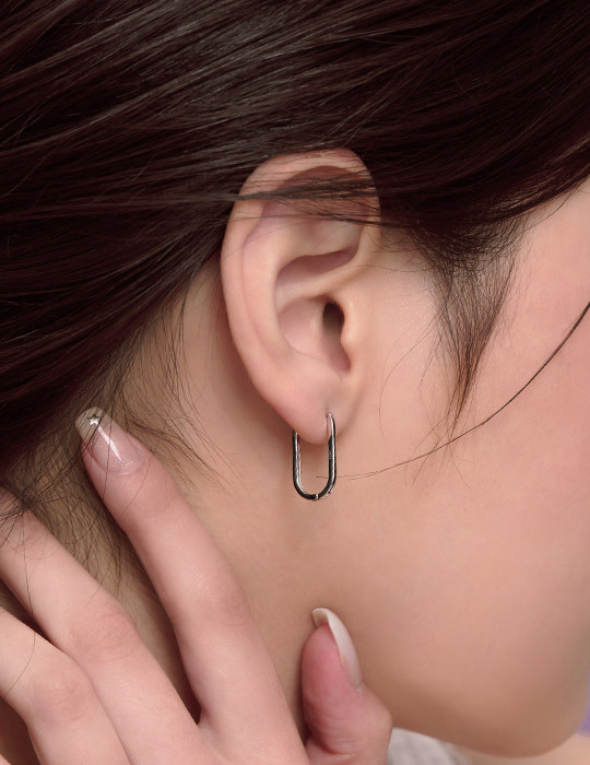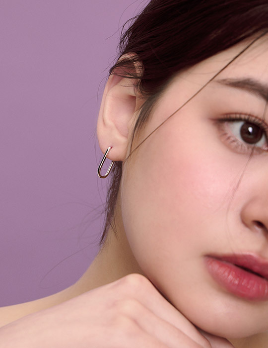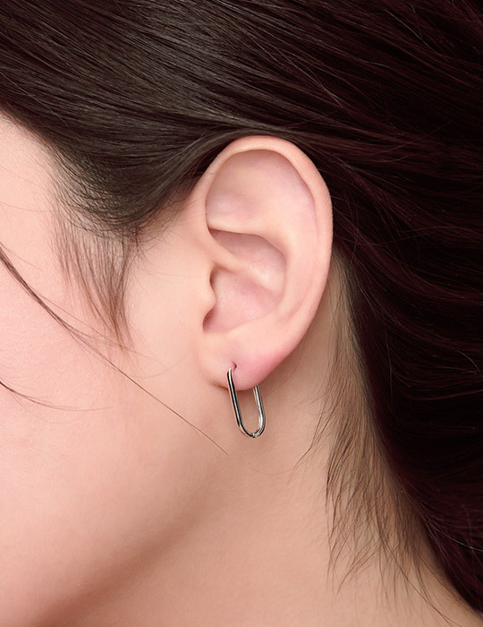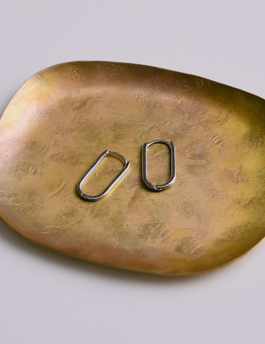 【925純銀】橢圓線條。銀針耳環(銀)