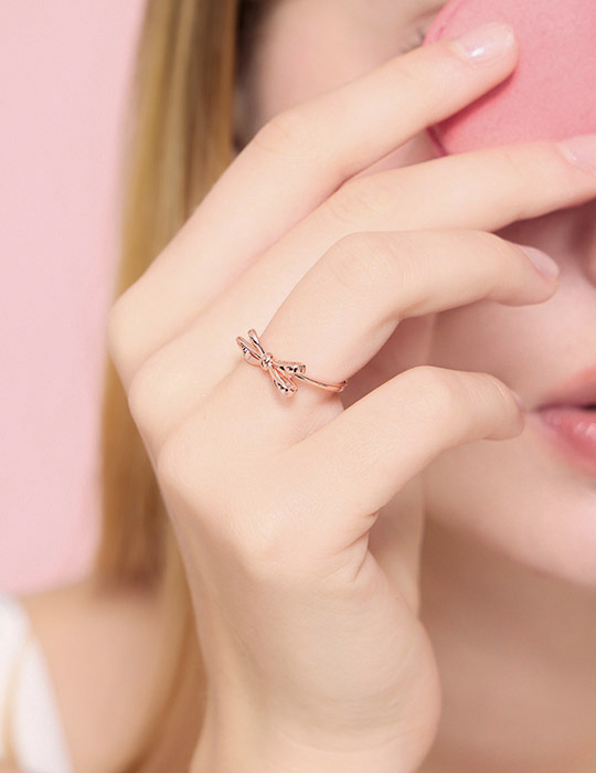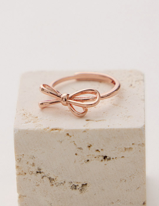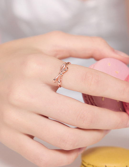 【925純銀】氣質蝴蝶結可調式戒指(玫瑰金)