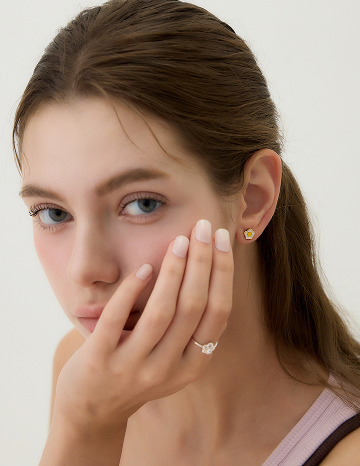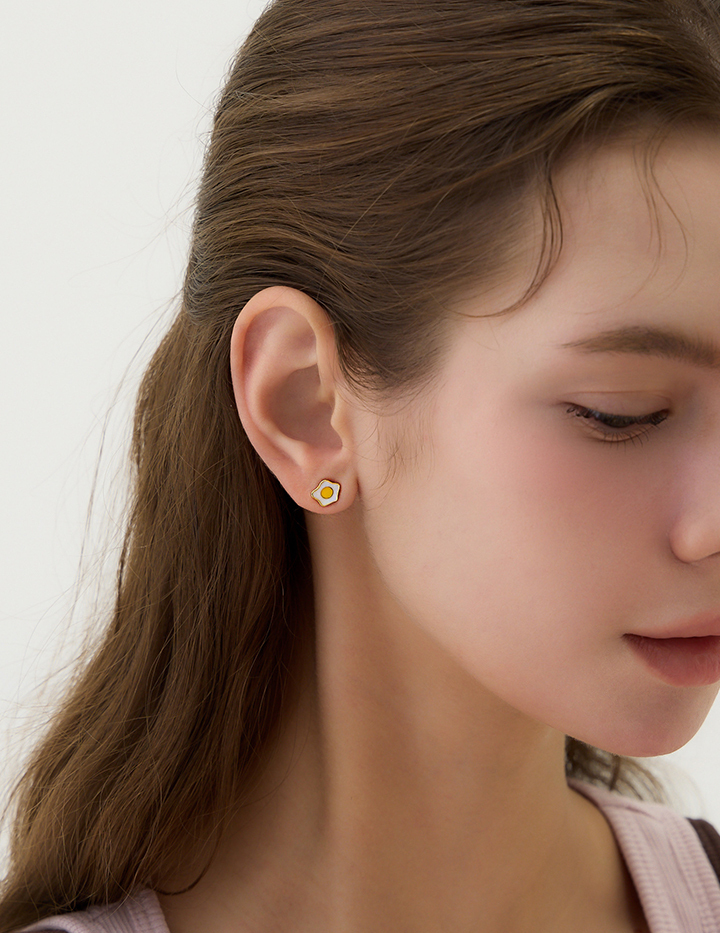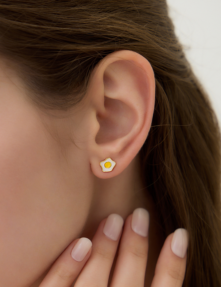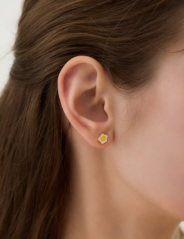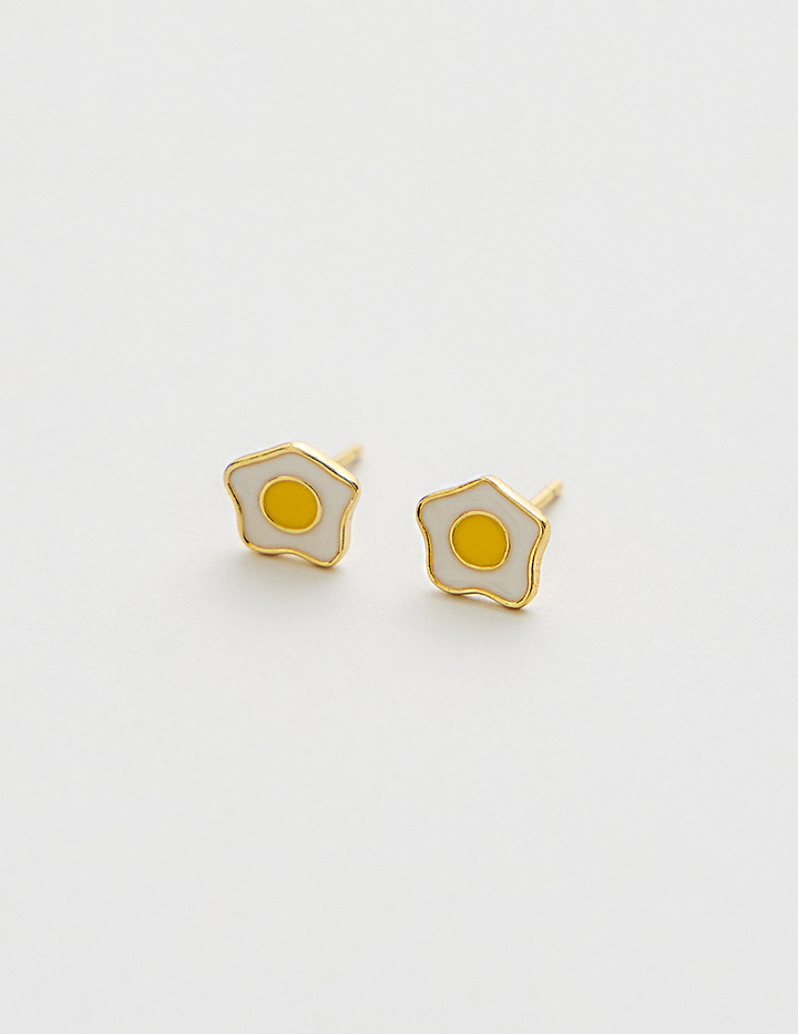 【925純銀】活力荷包蛋。針式耳環