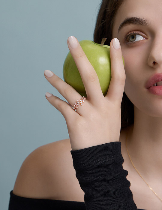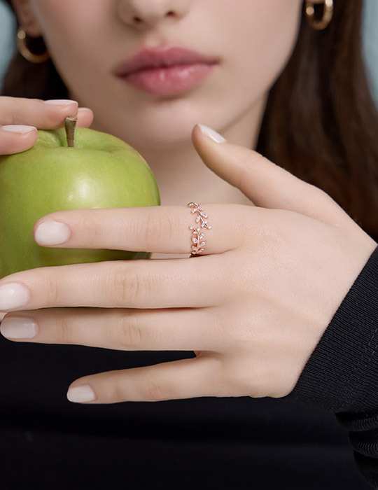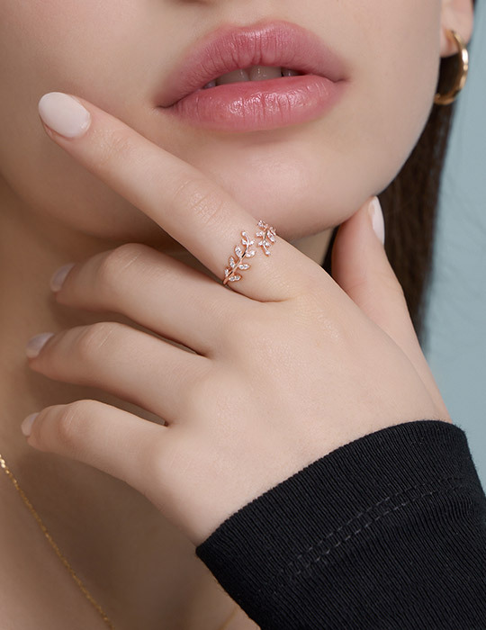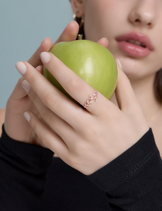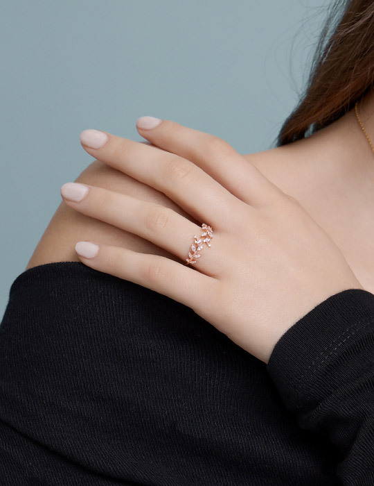 【925純銀】清新麥穗鑲鑽可調式戒指(玫瑰金)