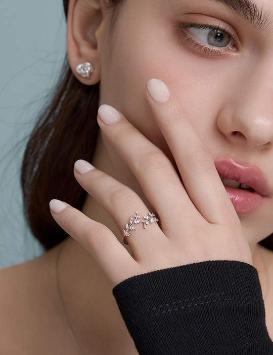 商品名稱:【925純銀】清新麥穗鑲鑽可調式戒指(銀)