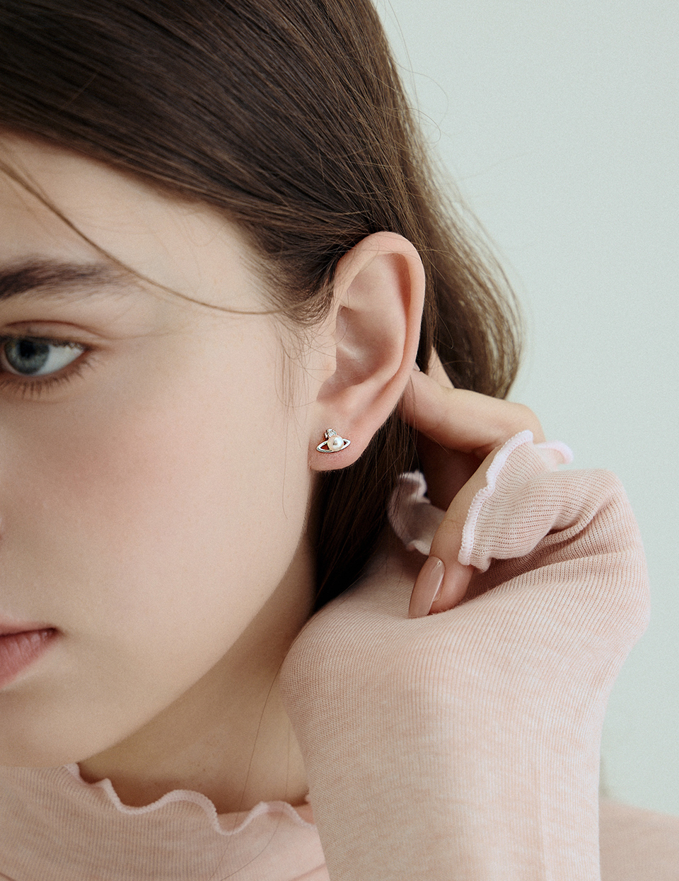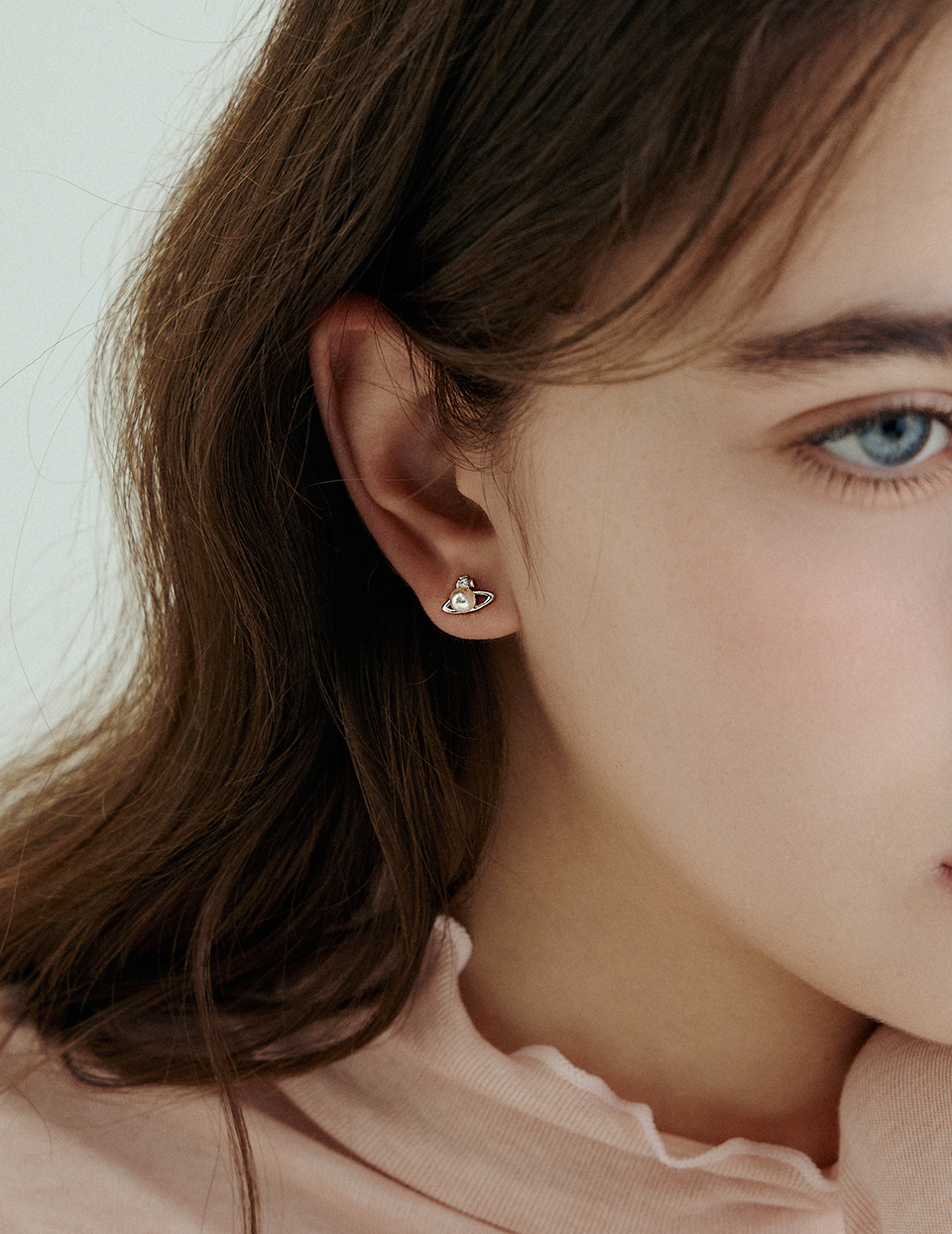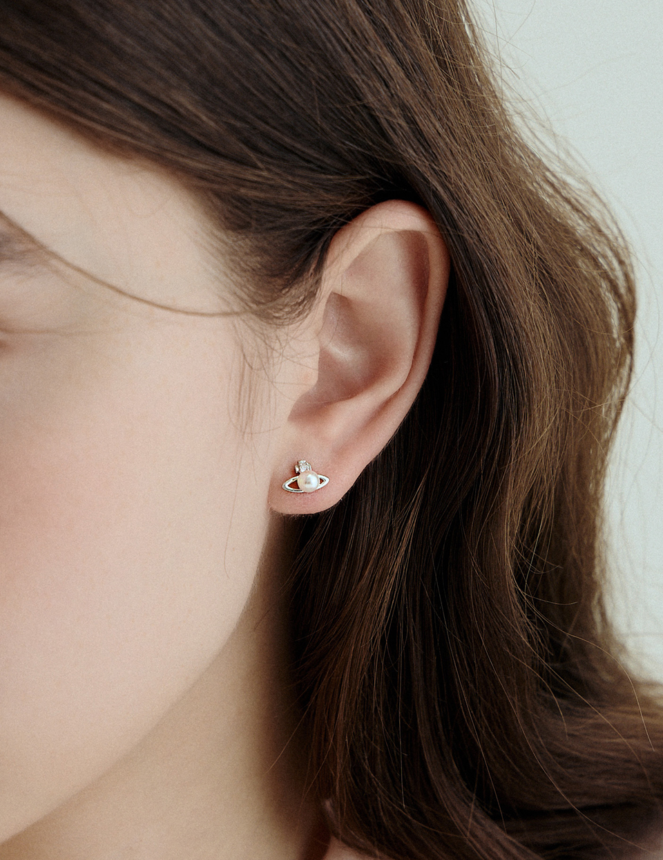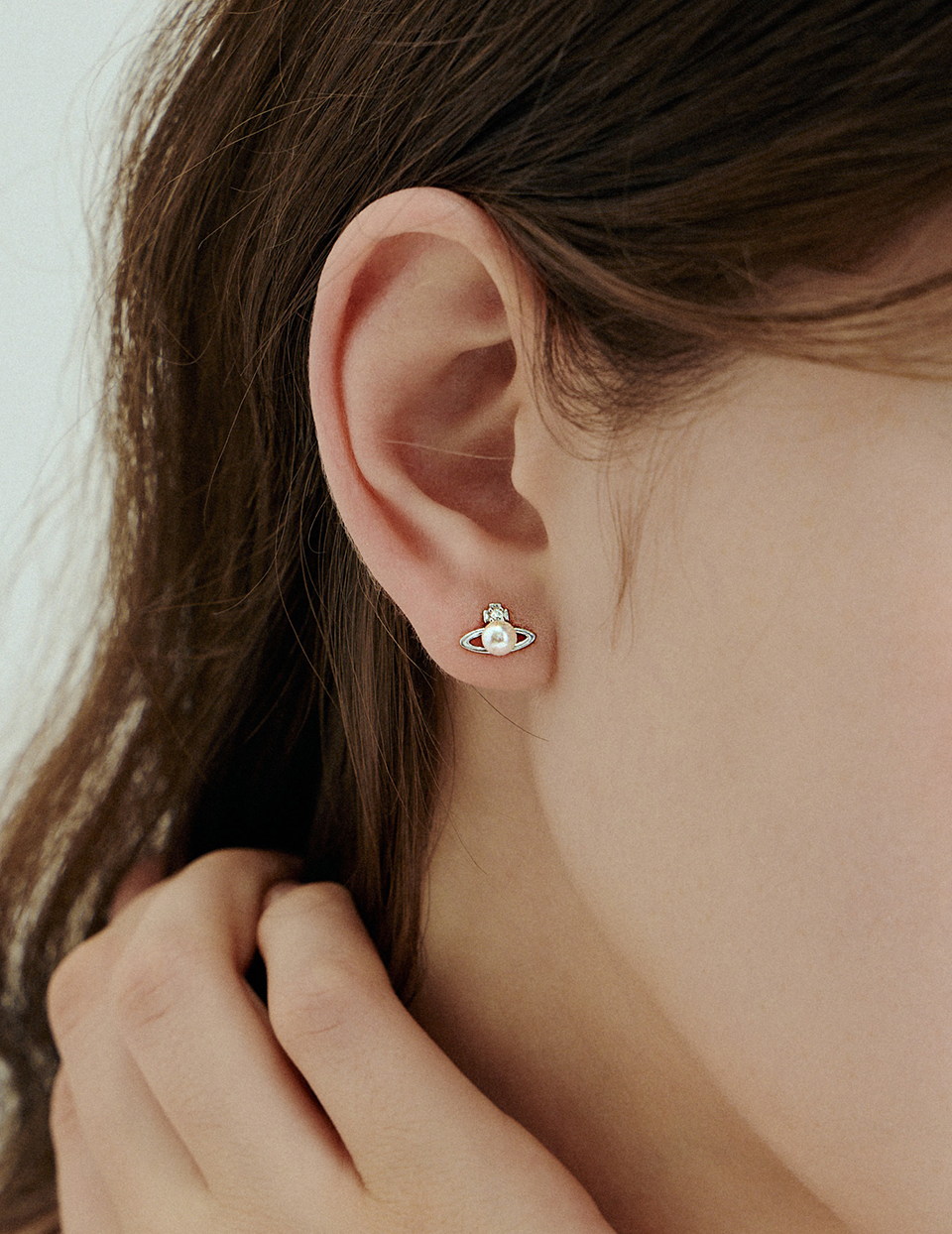 【925純銀】珍珠星環。針式耳環