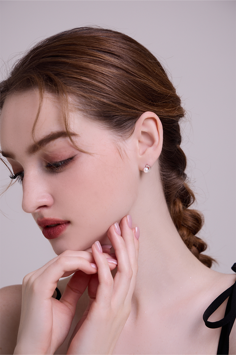 材質:白金電鍍925純銀/鋯石/手工珍珠/925銀針