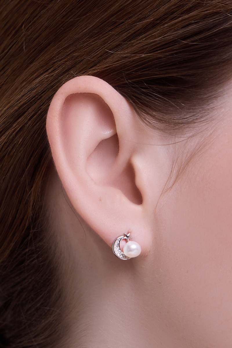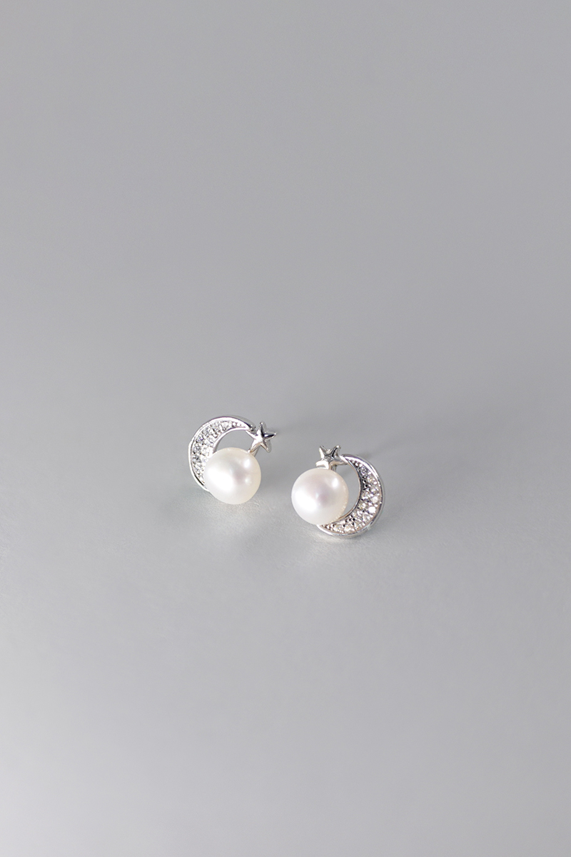 商品名稱:【925純銀】珍珠月亮。銀針耳環