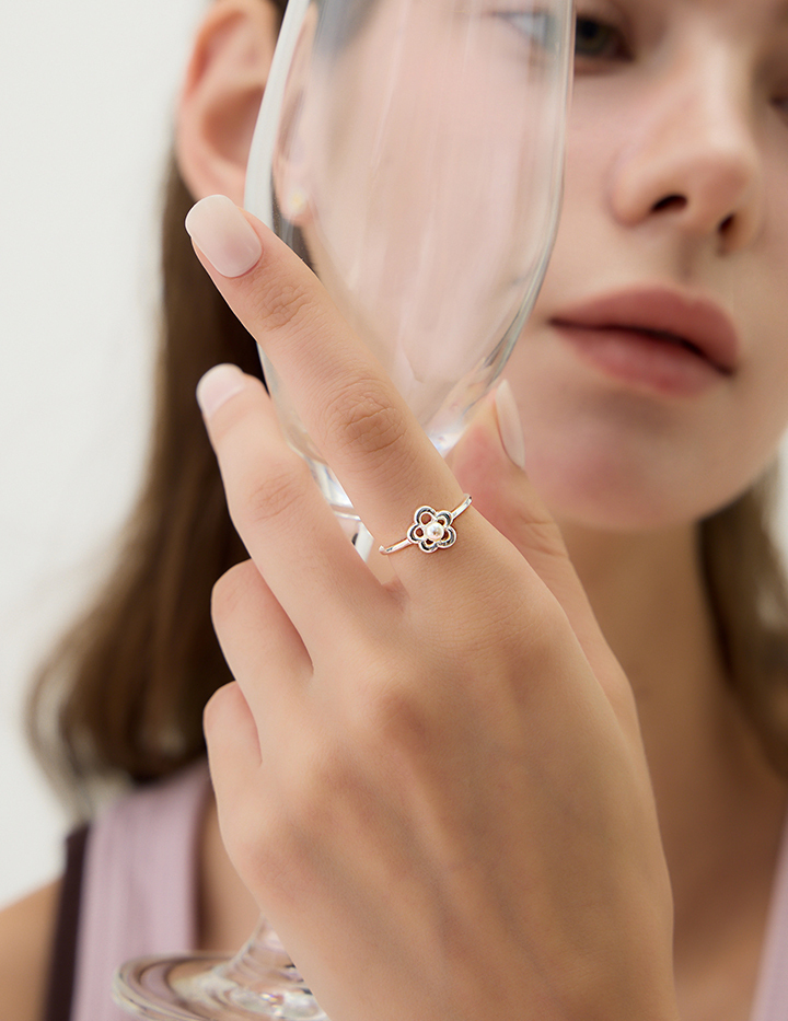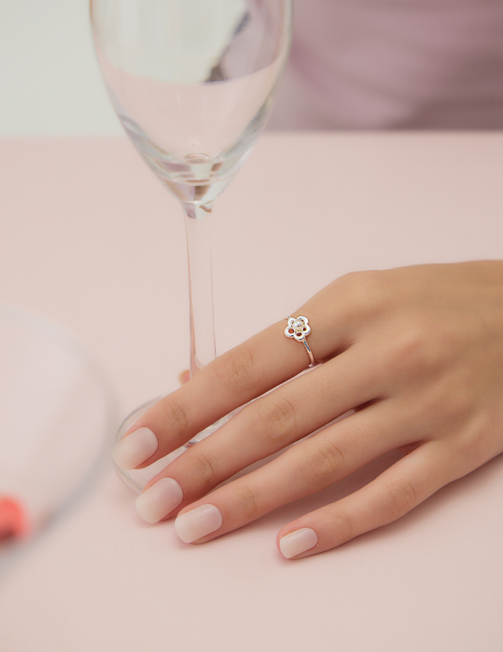 【925純銀】珍珠鏤花可調式戒指