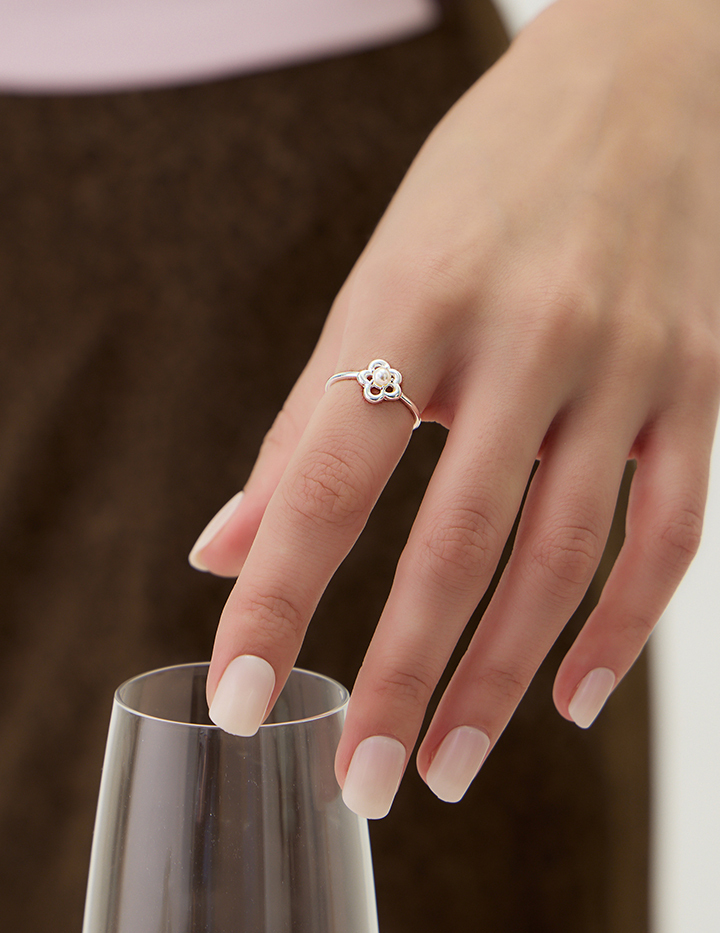 商品名稱:【925純銀】珍珠鏤花可調式戒指
