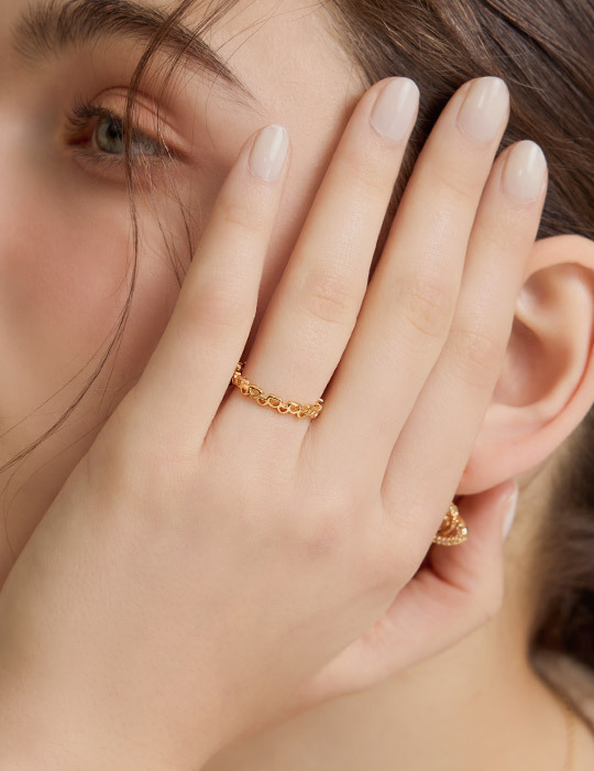 商品名稱:【925純銀】簍空愛心可調式戒指(金)