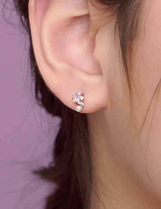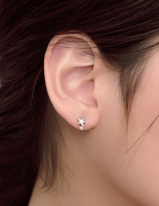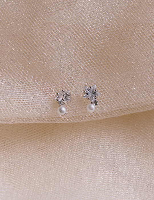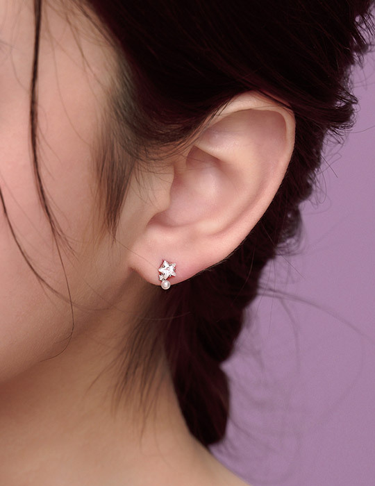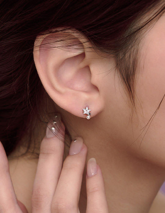 【925純銀】簡約弧形星星。銀針耳環(銀)