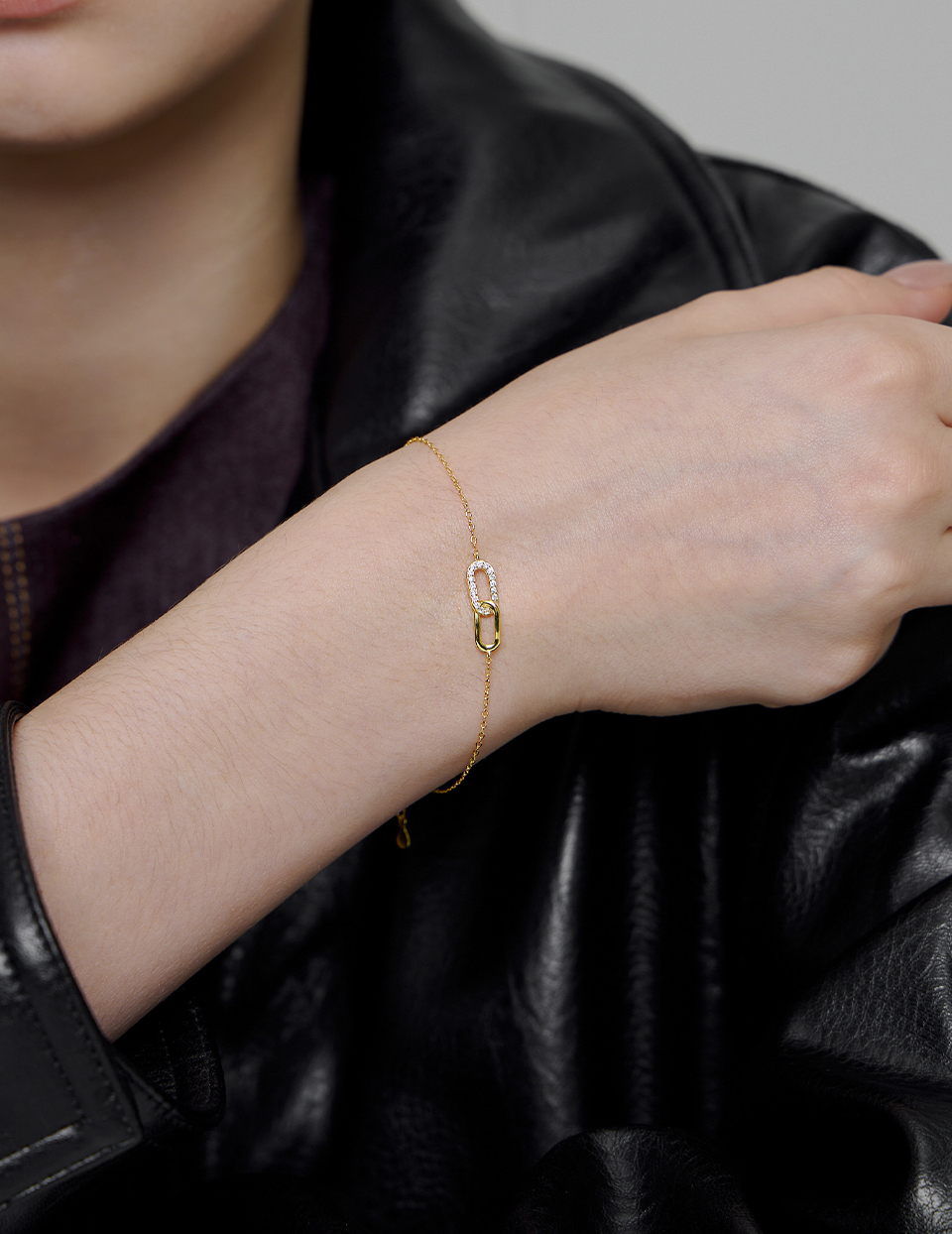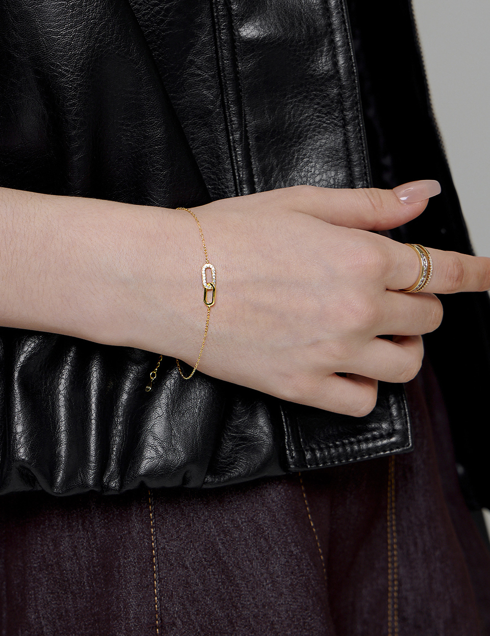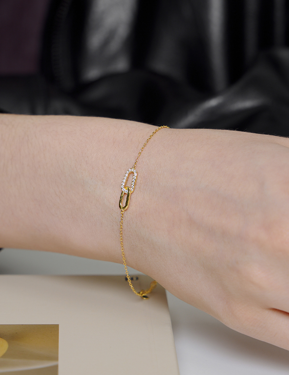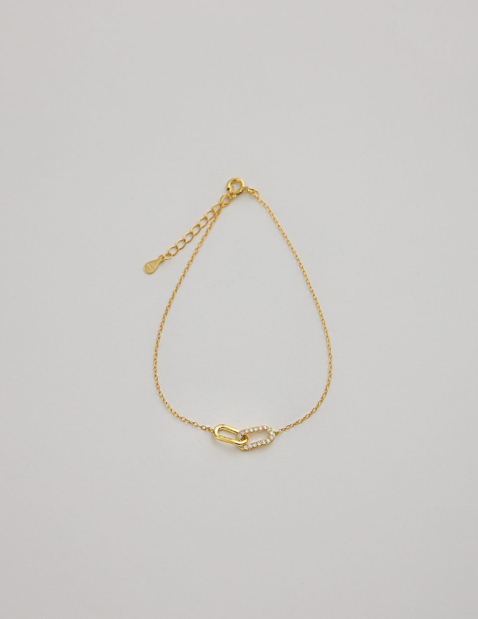 商品名稱:【925純銀】經典雙環滿鑽手鍊(金)