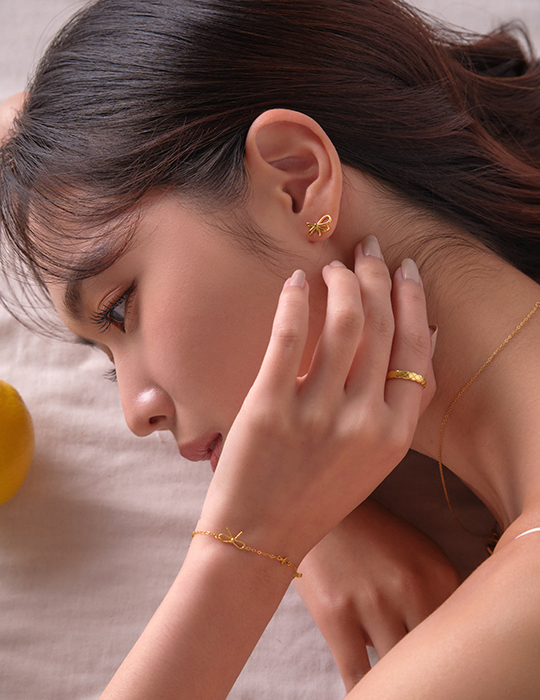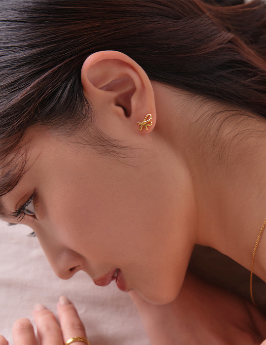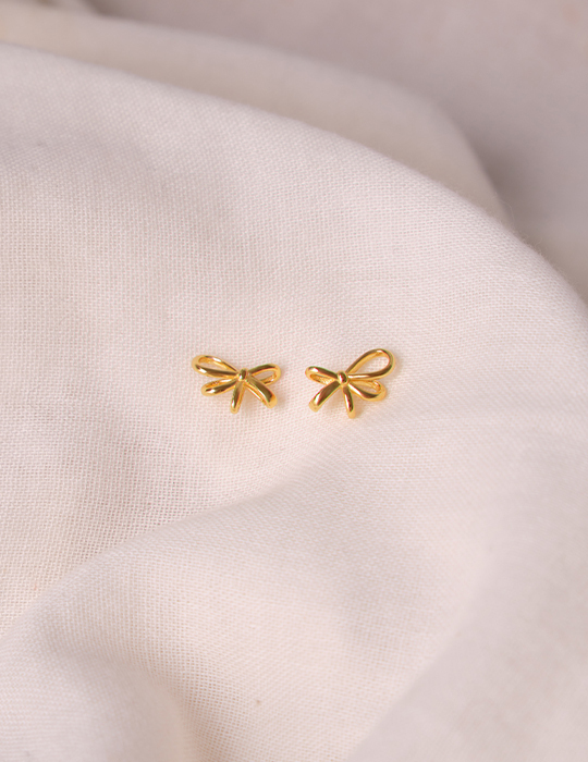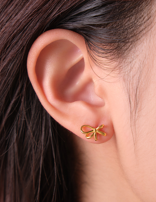 【925純銀】線條立體蝴蝶結。銀針耳環(金)