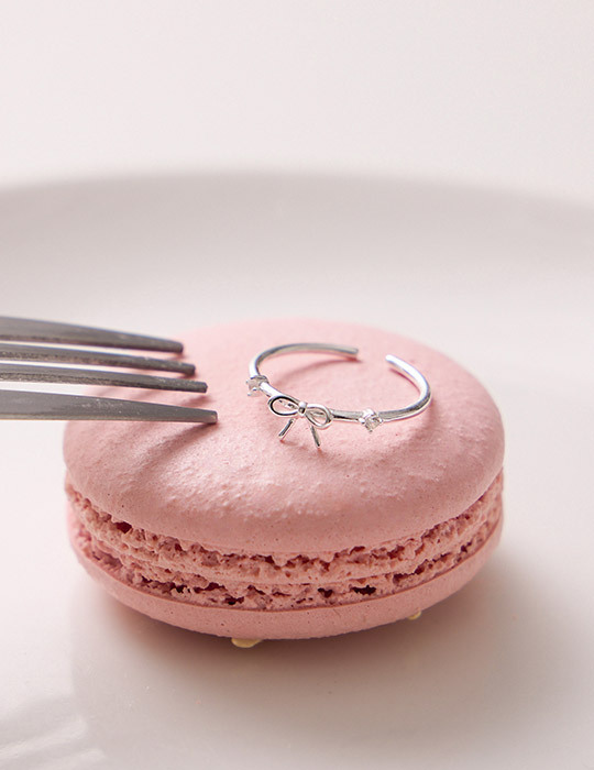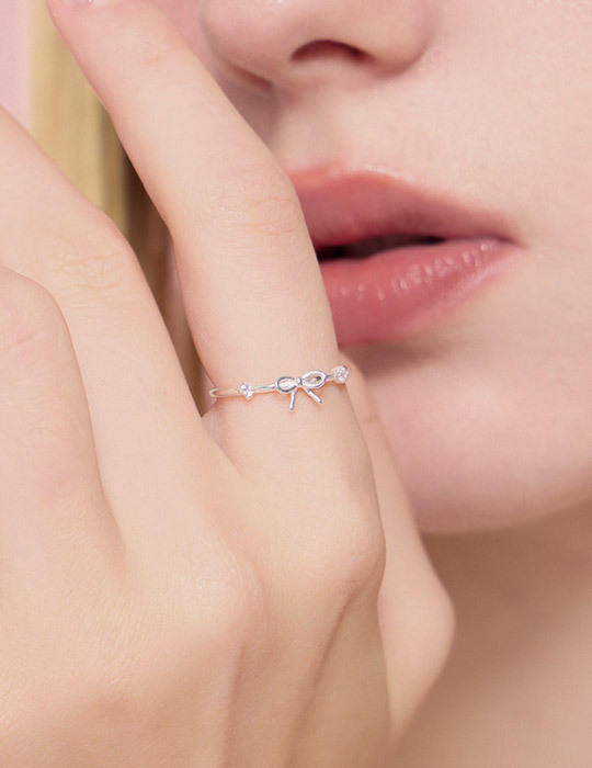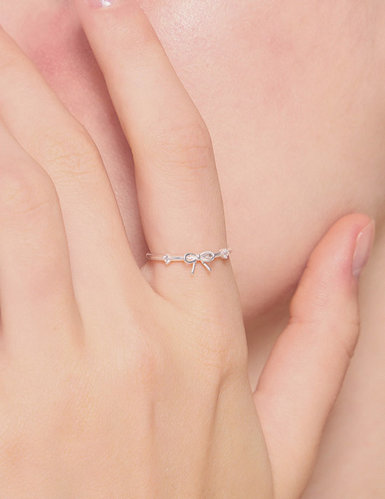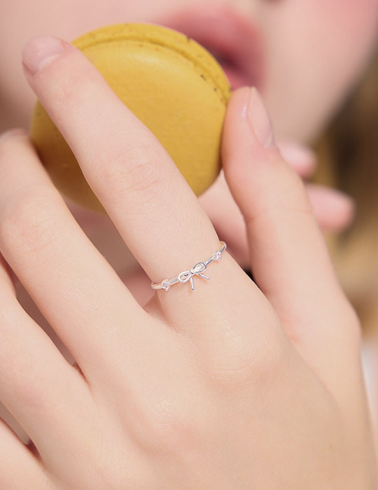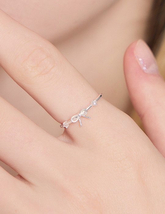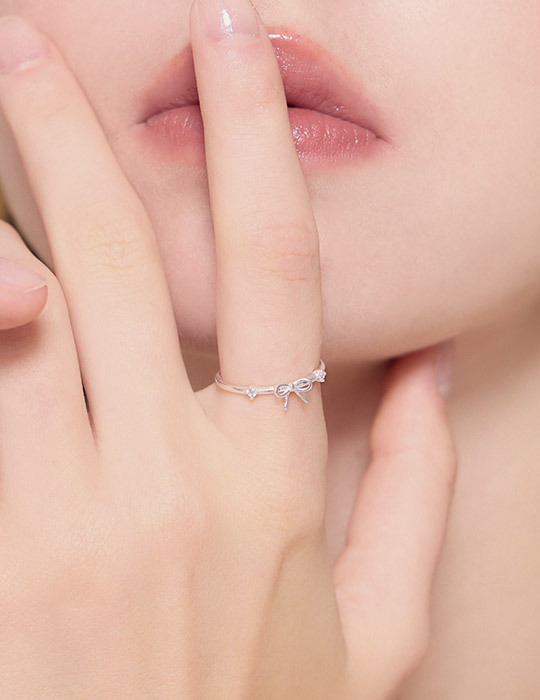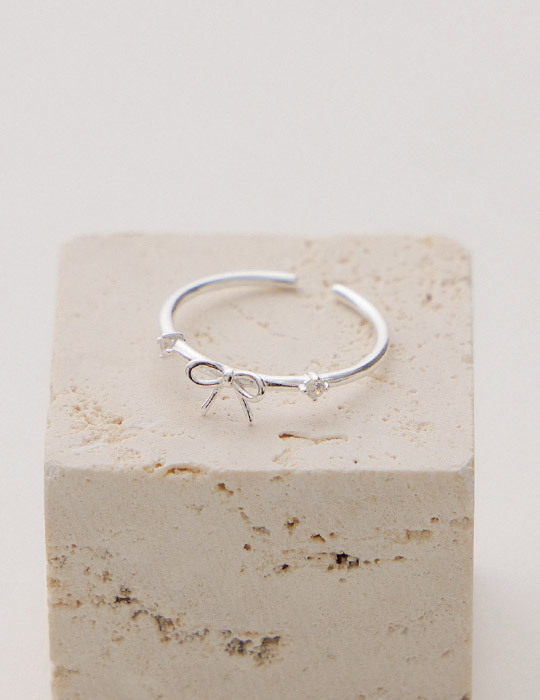 【925純銀】緞帶雙鑽點綴可調式戒指