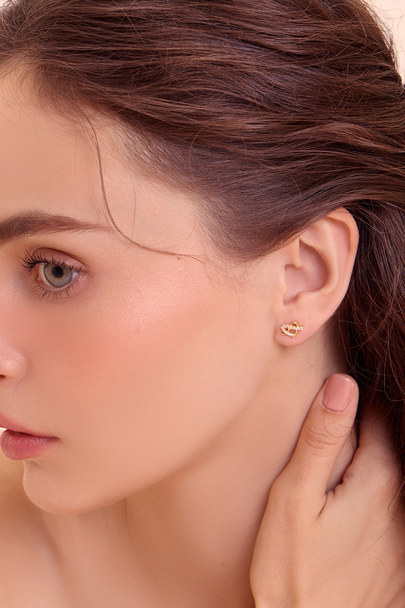商品名稱:  【925純銀】纏繞愛心鑲鑽。銀針耳環