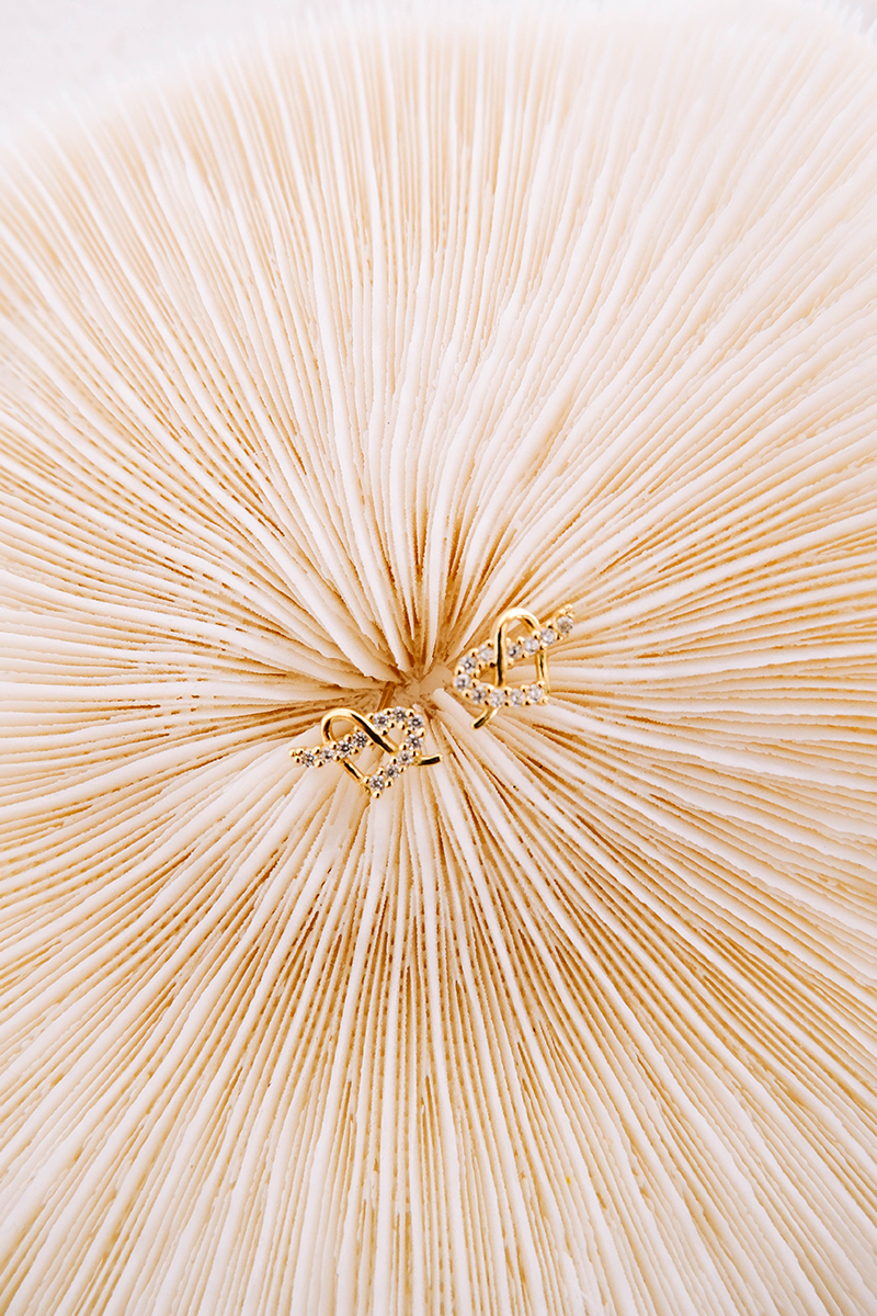 【925純銀】纏繞愛心鑲鑽。銀針耳環