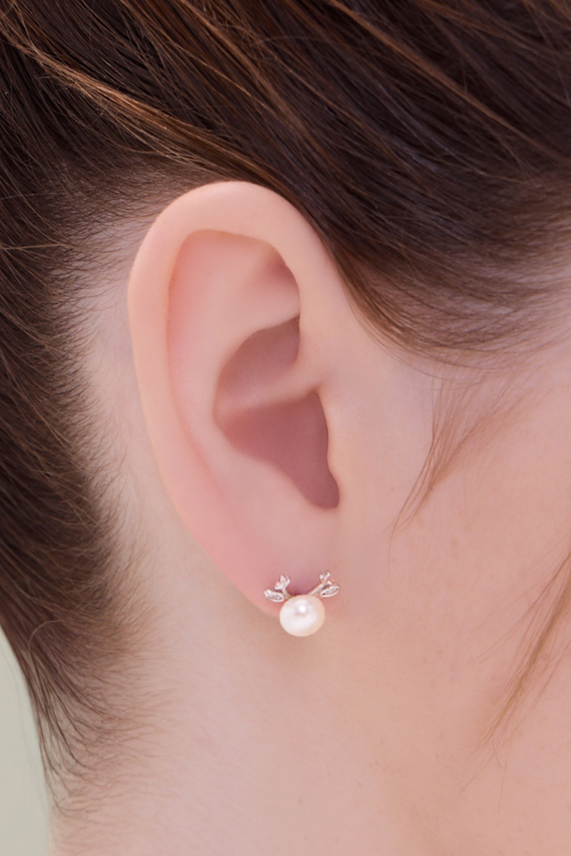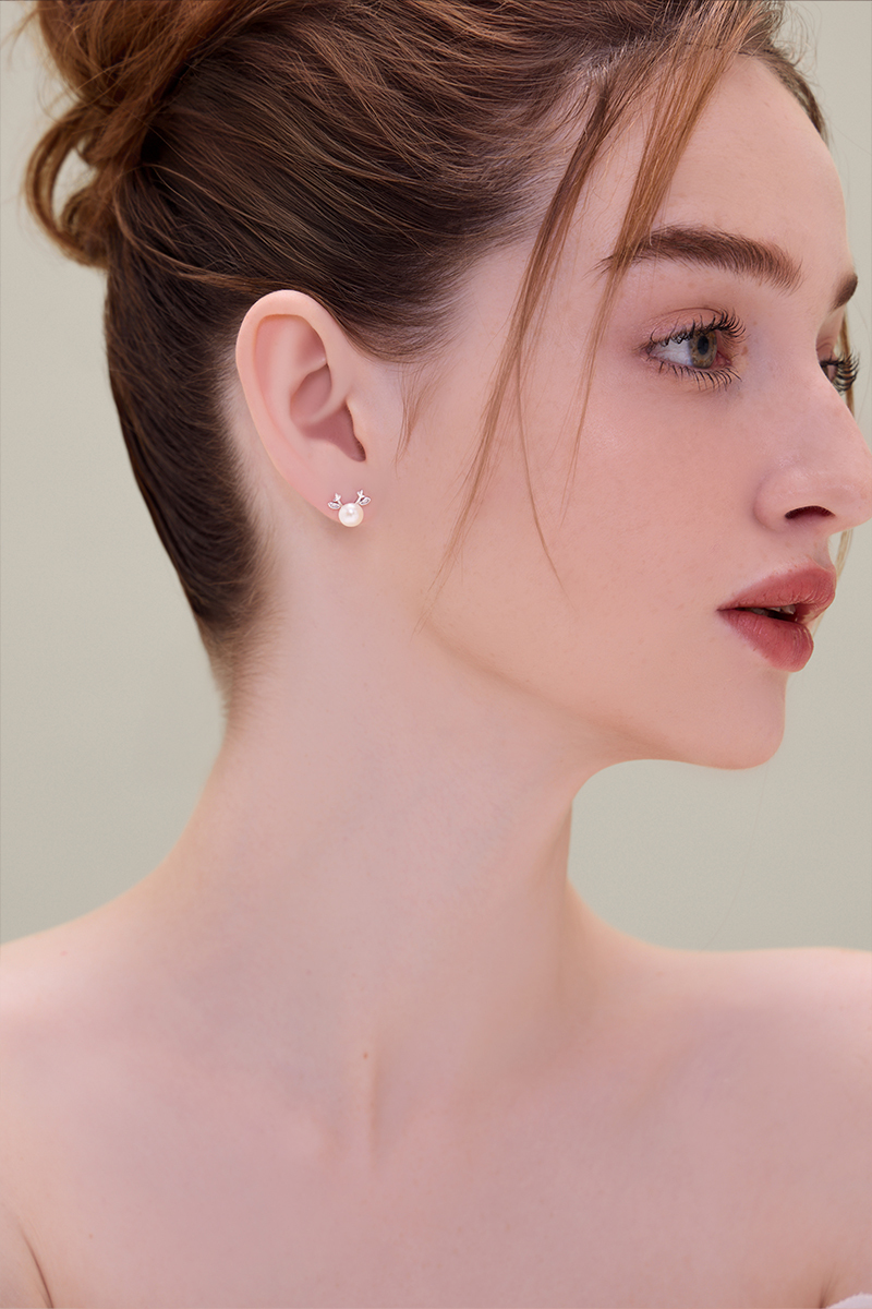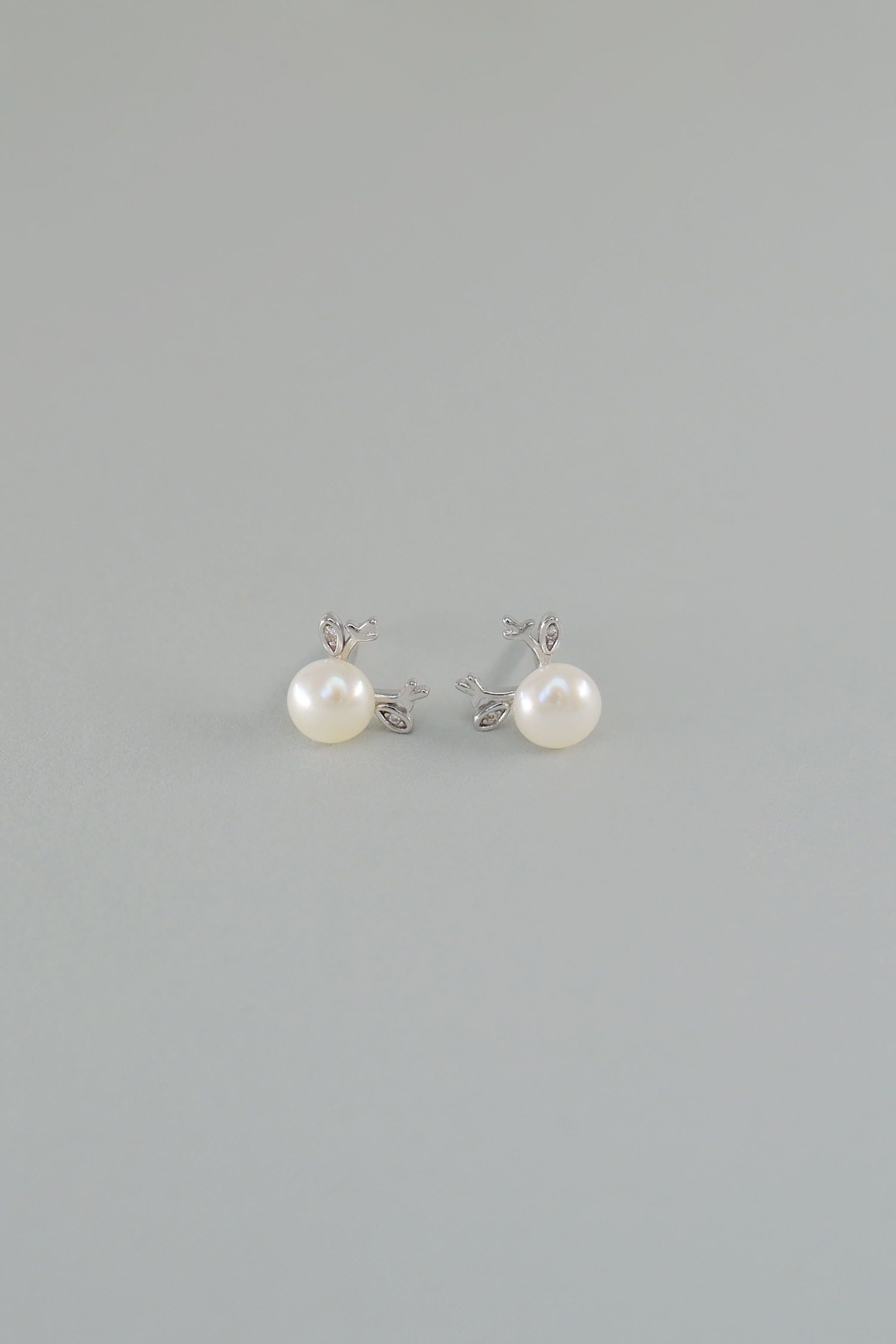 【925純銀】聖誕限定淡水珍珠小鹿。銀針耳環(銀)