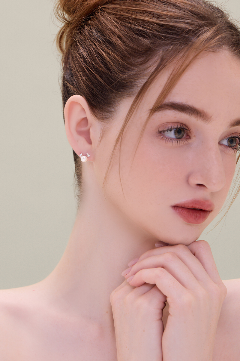 商品名稱: 【925純銀】聖誕限定淡水珍珠小鹿。銀針耳環(銀)