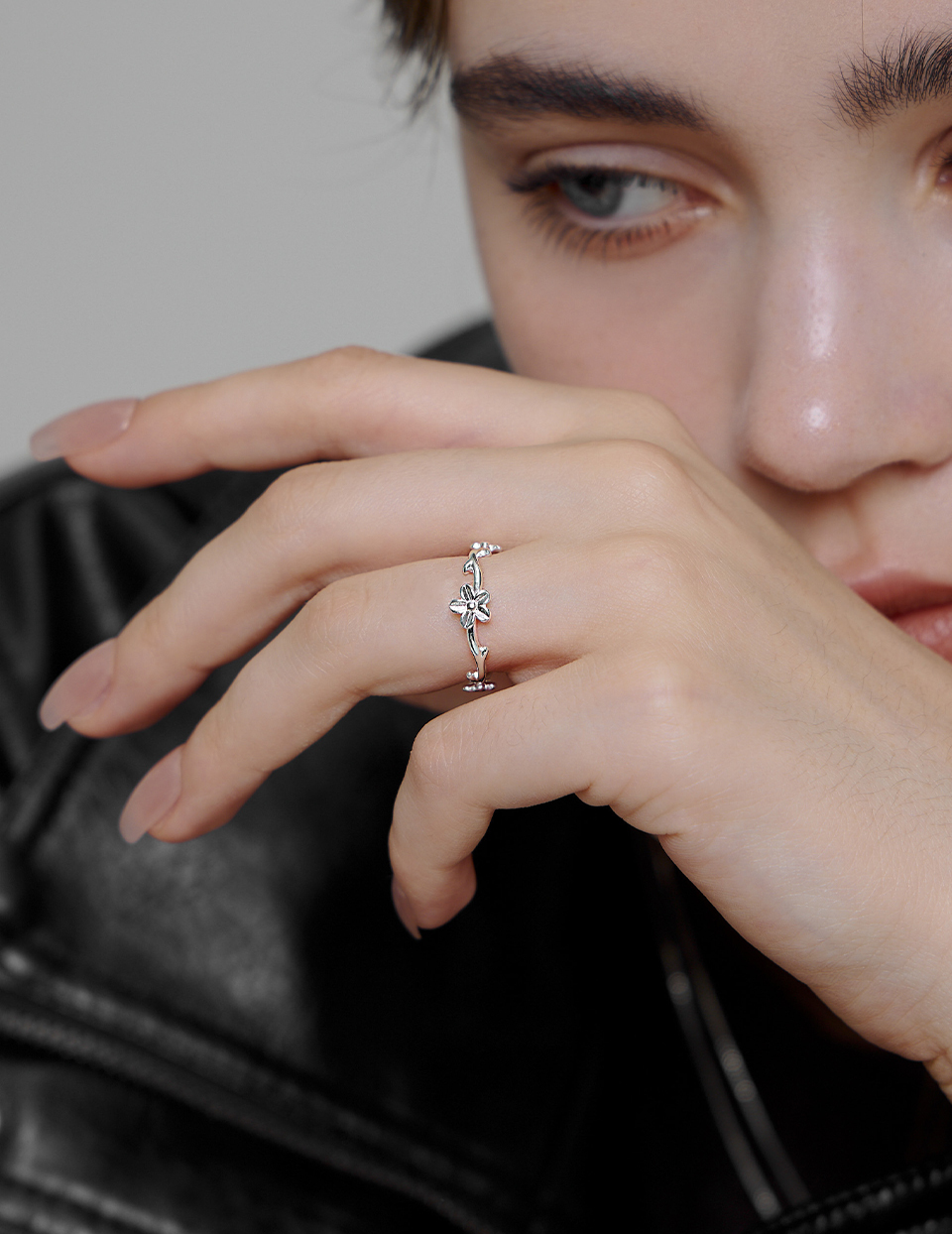 【925純銀】藤蔓花朵可調式戒指