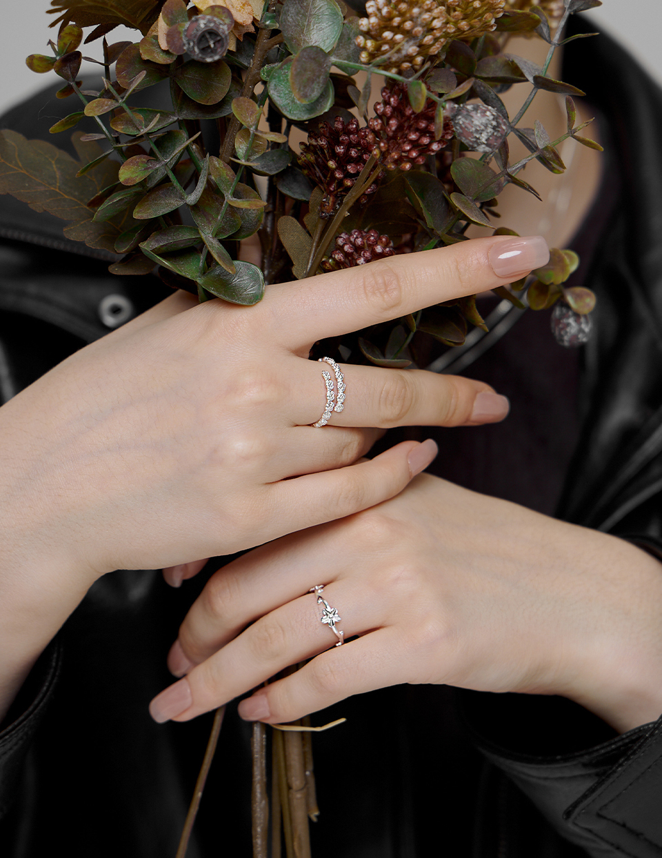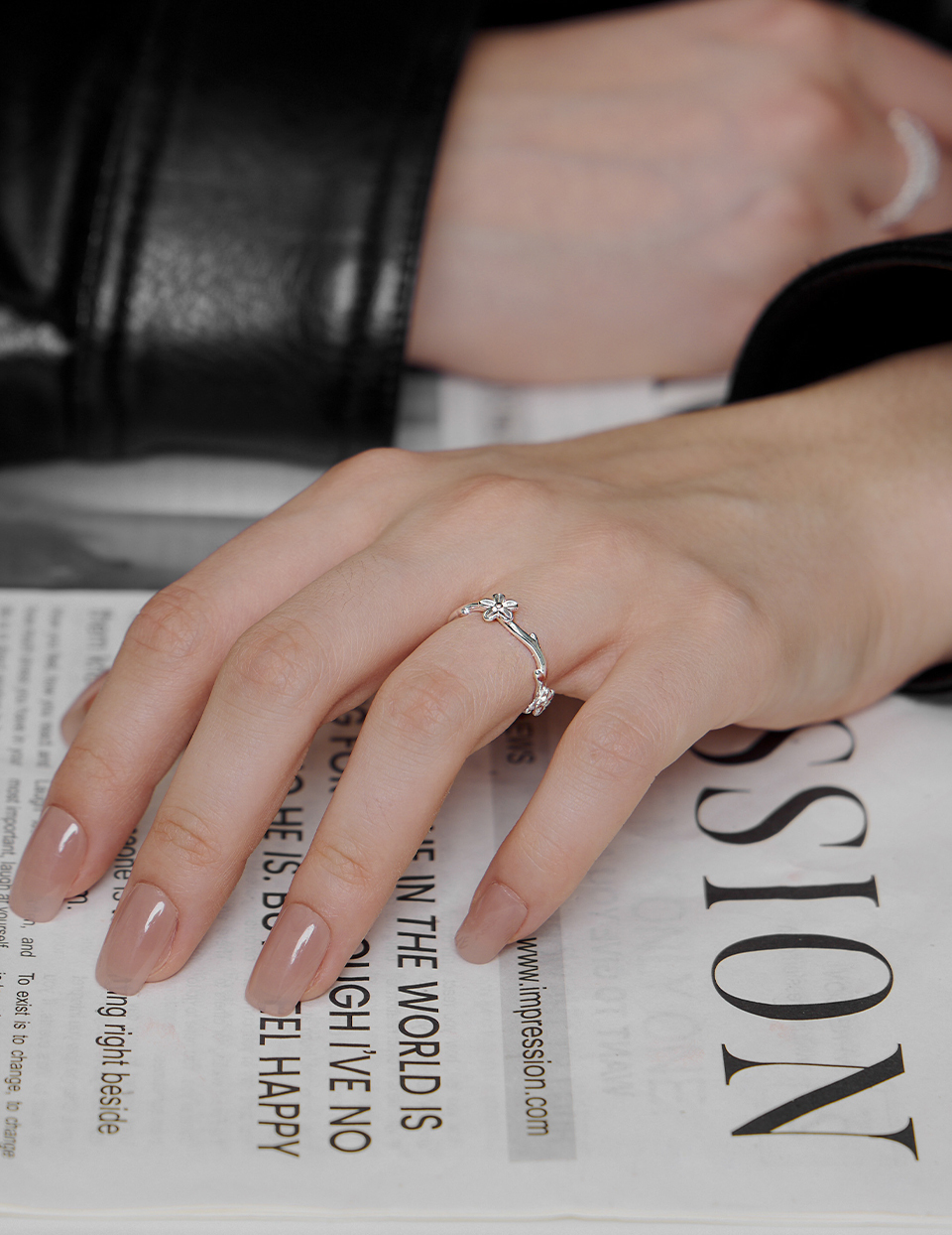 商品名稱:【925純銀】藤蔓花朵可調式戒指