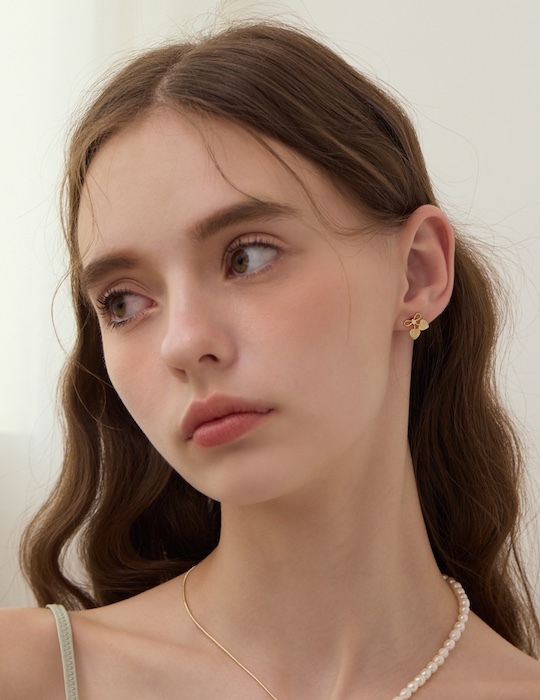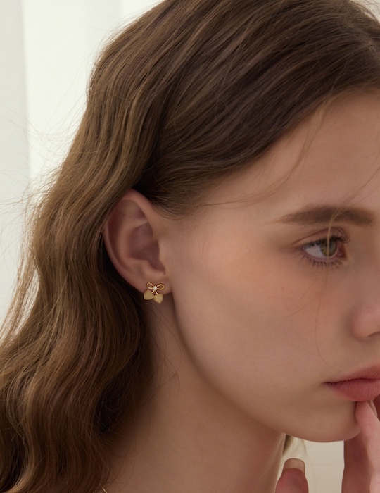 【925純銀】蝴蝶結櫻桃鑽。針式耳環